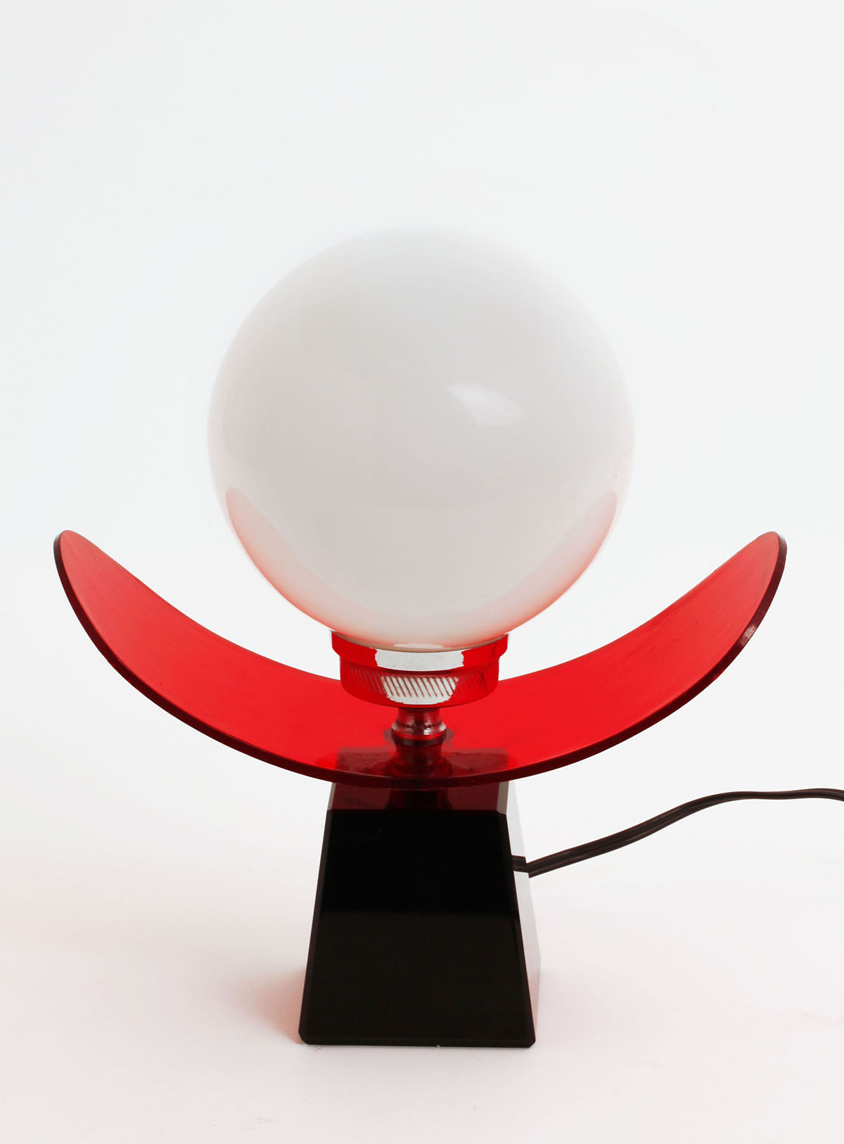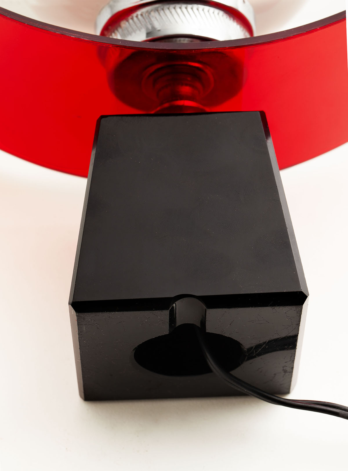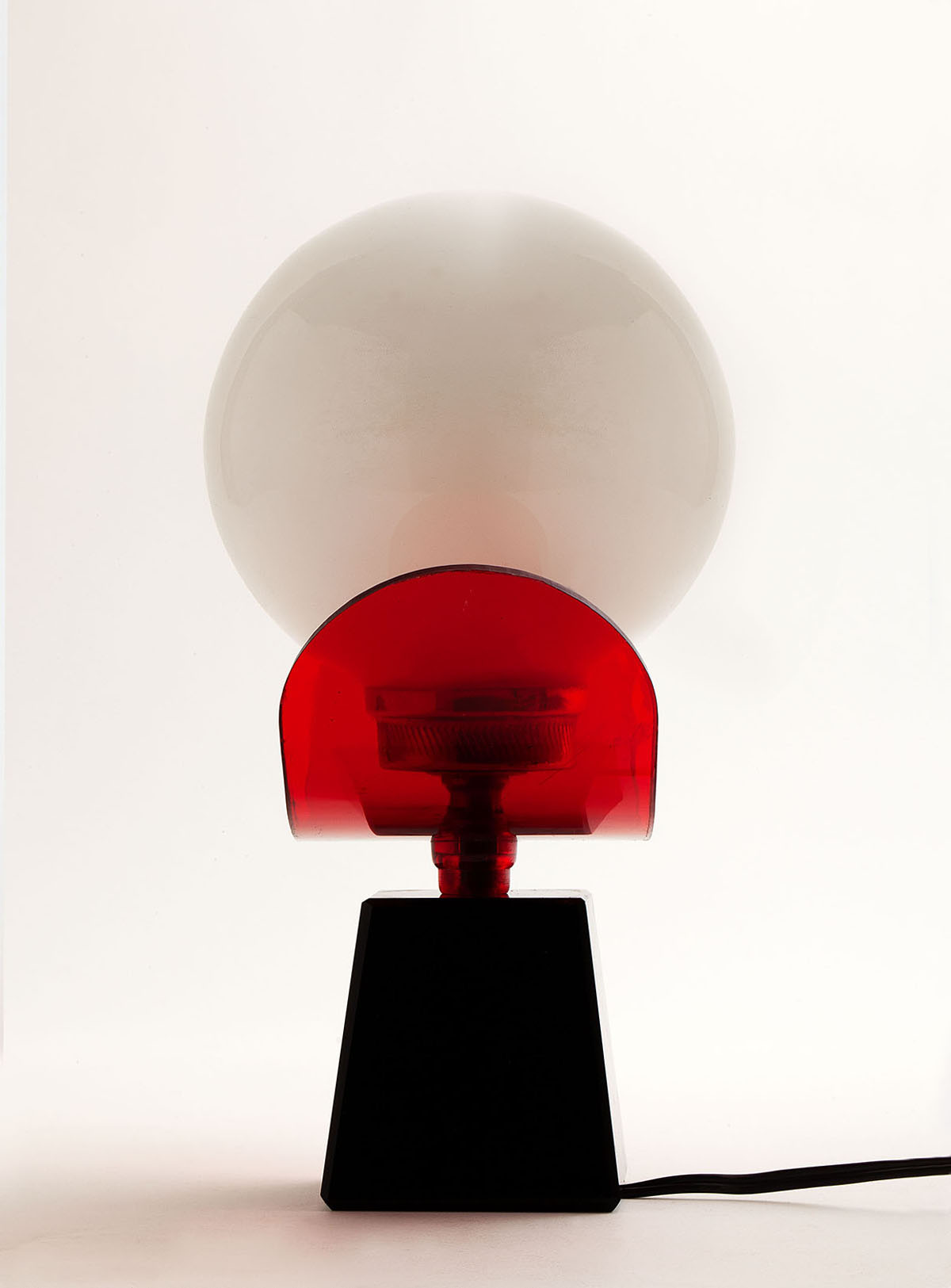 Table lamp from the 70’s Solid black glass base, red methacrylate and opaline glass shade. Original wiring In good vintage condition