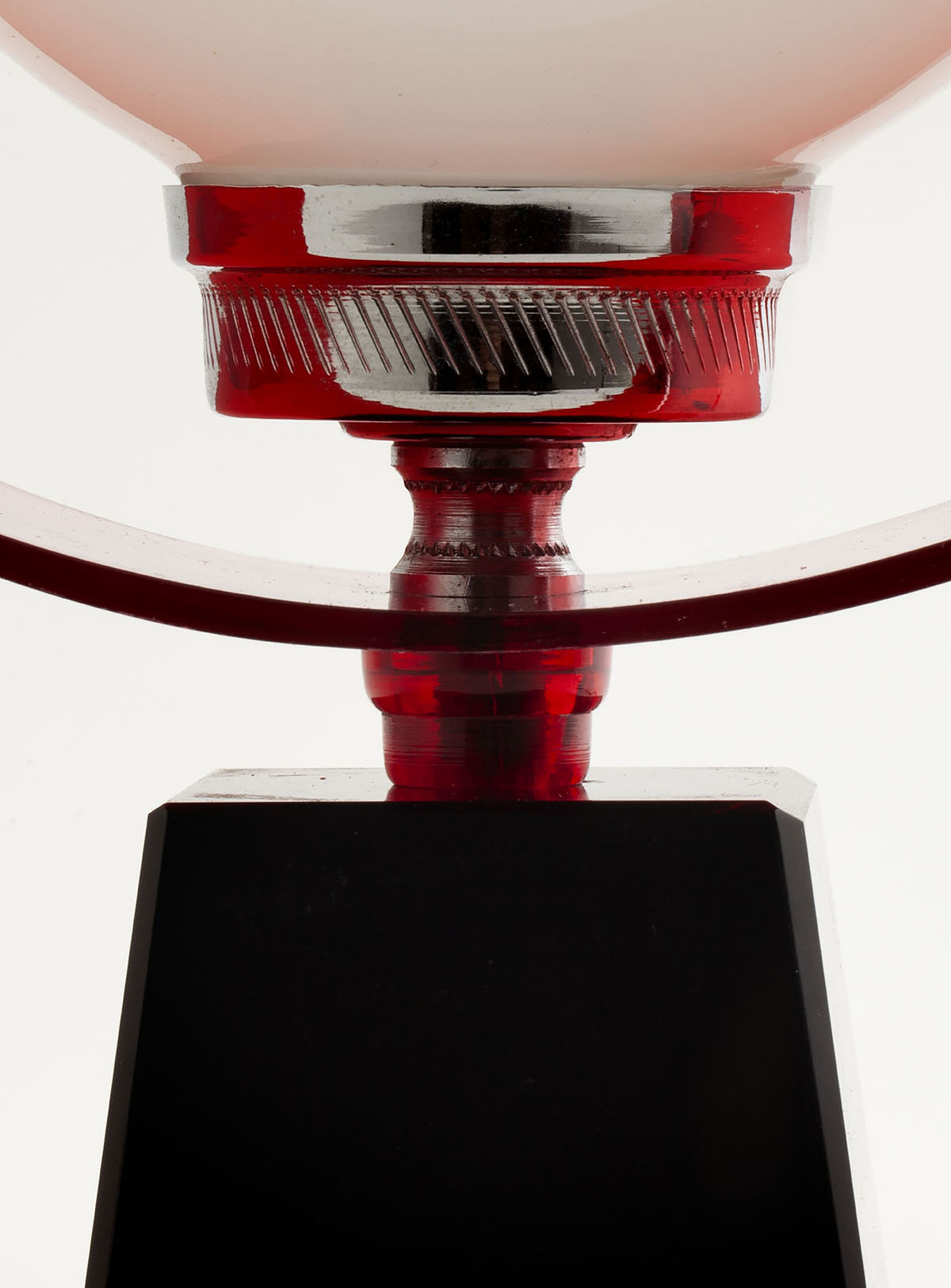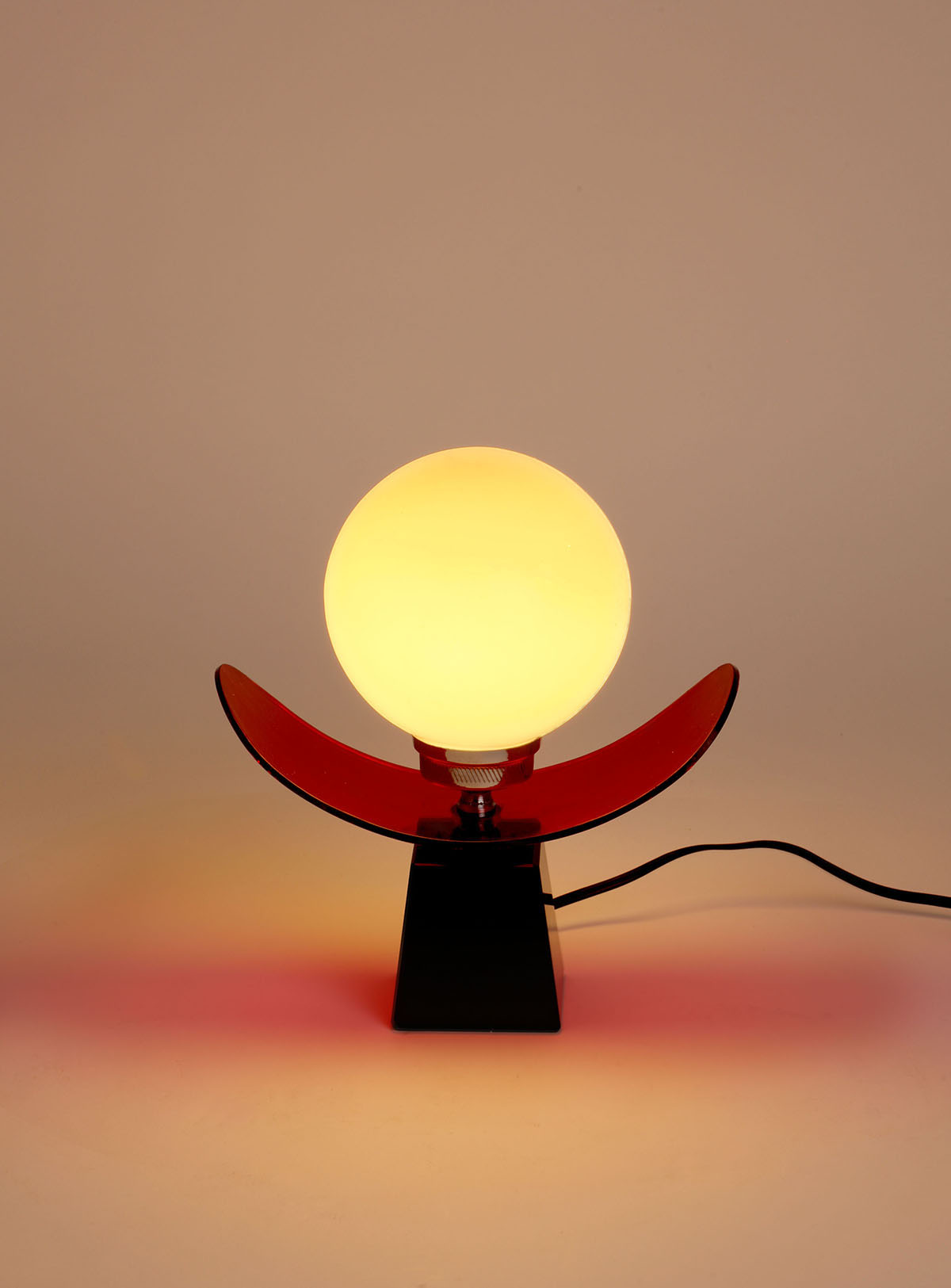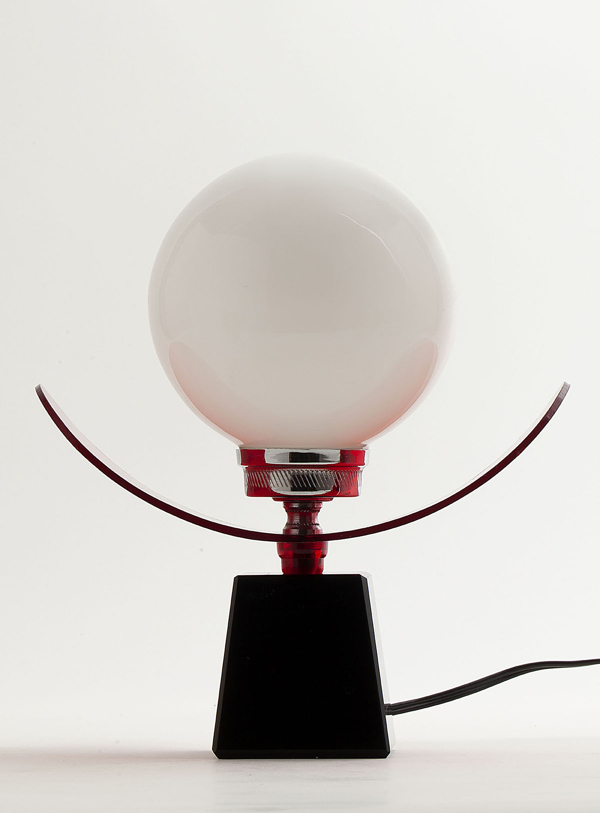 Table lamp from the 70’s Solid black glass base, red methacrylate and opaline glass shade. Original wiring In good vintage condition