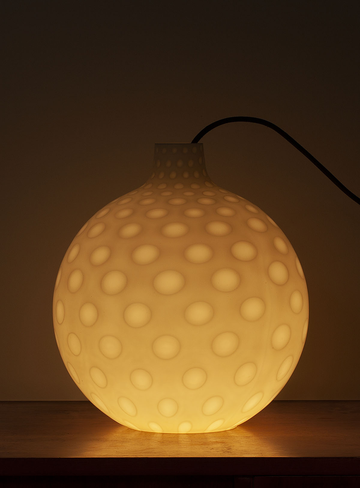 the lamp is even more beautiful when lit. It is almost hypnotic and creates a very cosy atmosphere.