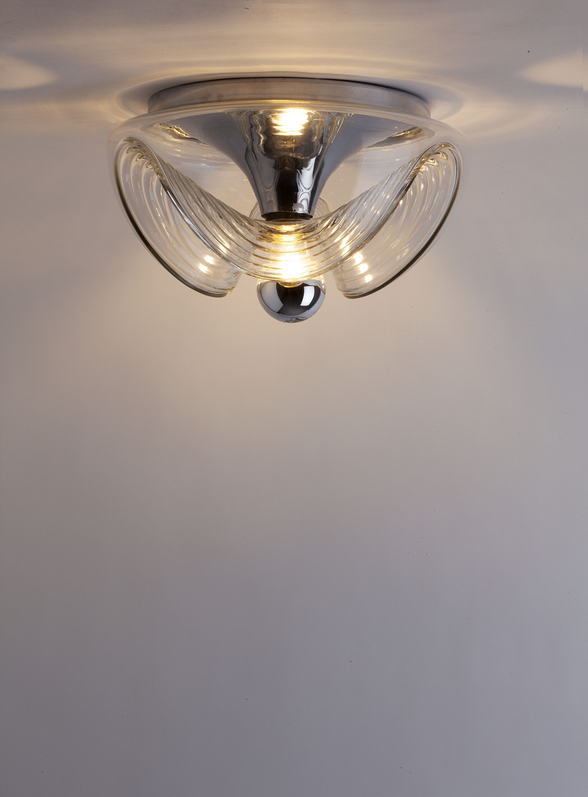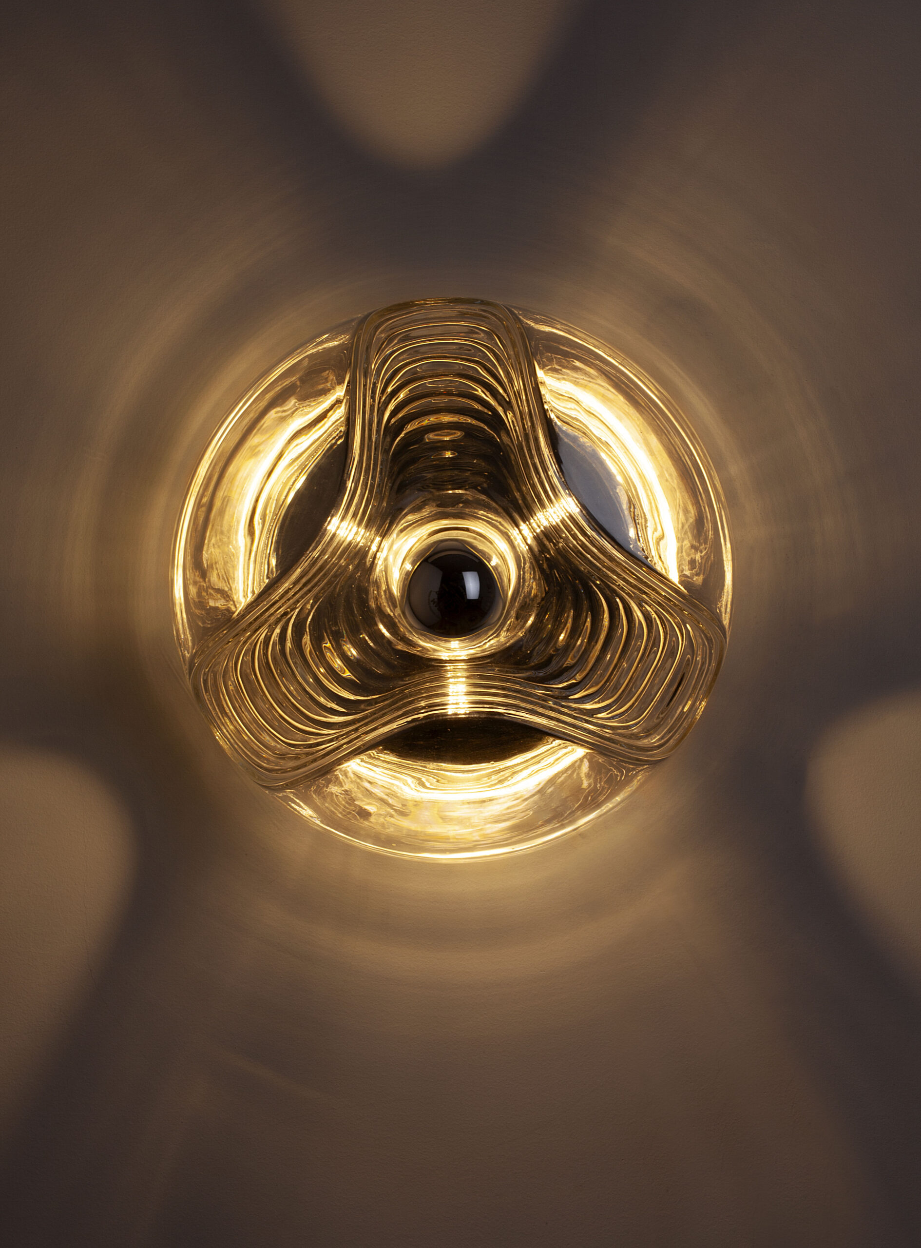 Futura, a ceiling or wall lamp made of moulded transparent glass, produced in Germany by Peill & Putzler in the early 1970s.