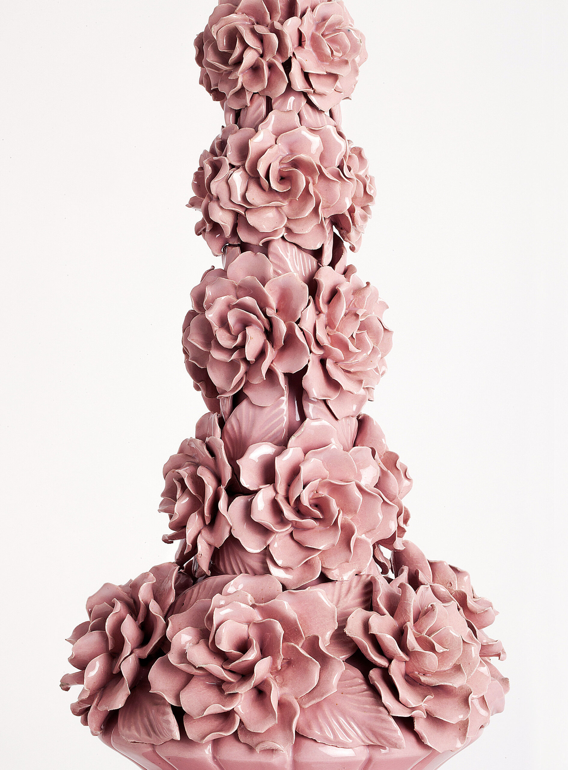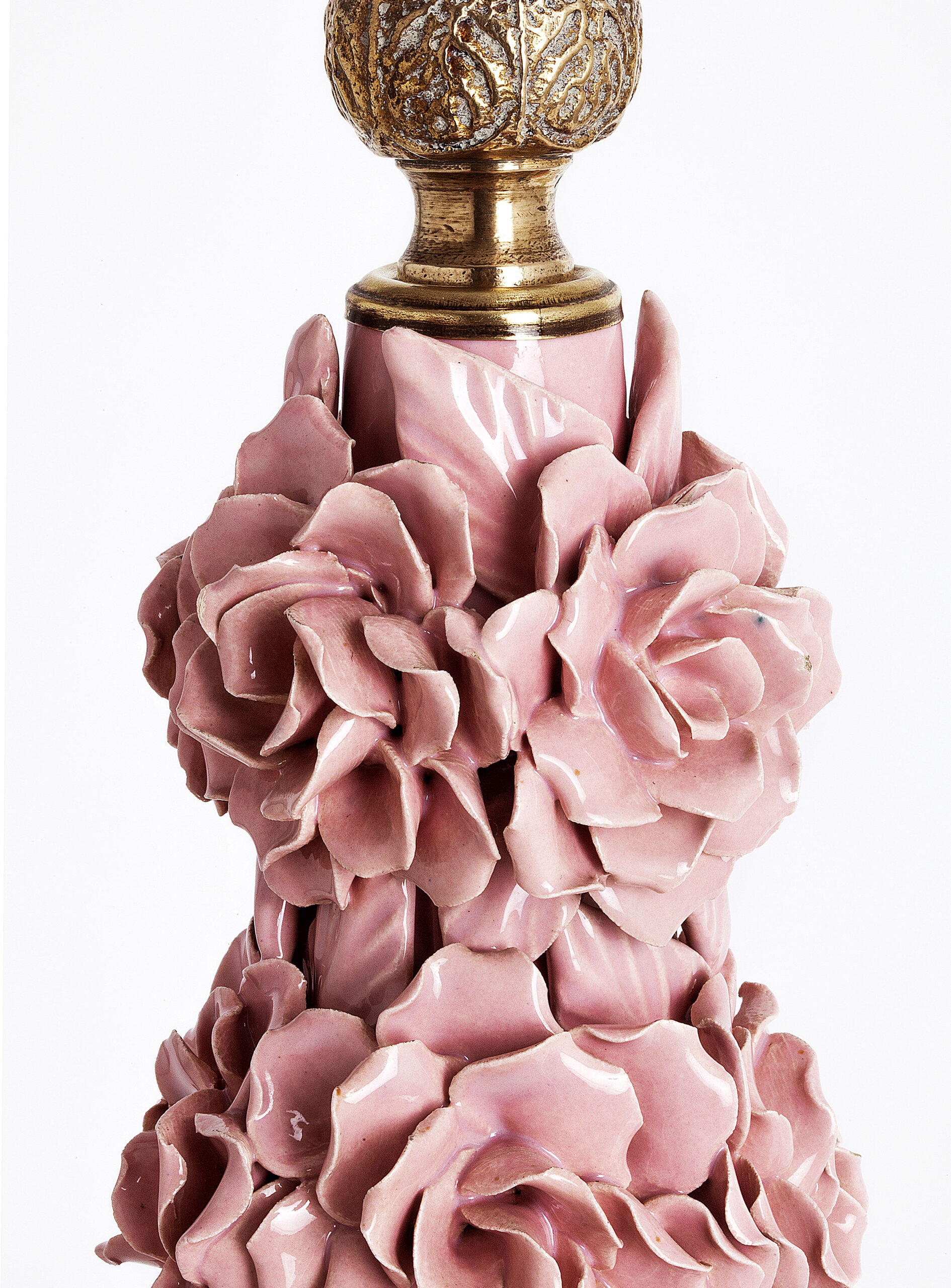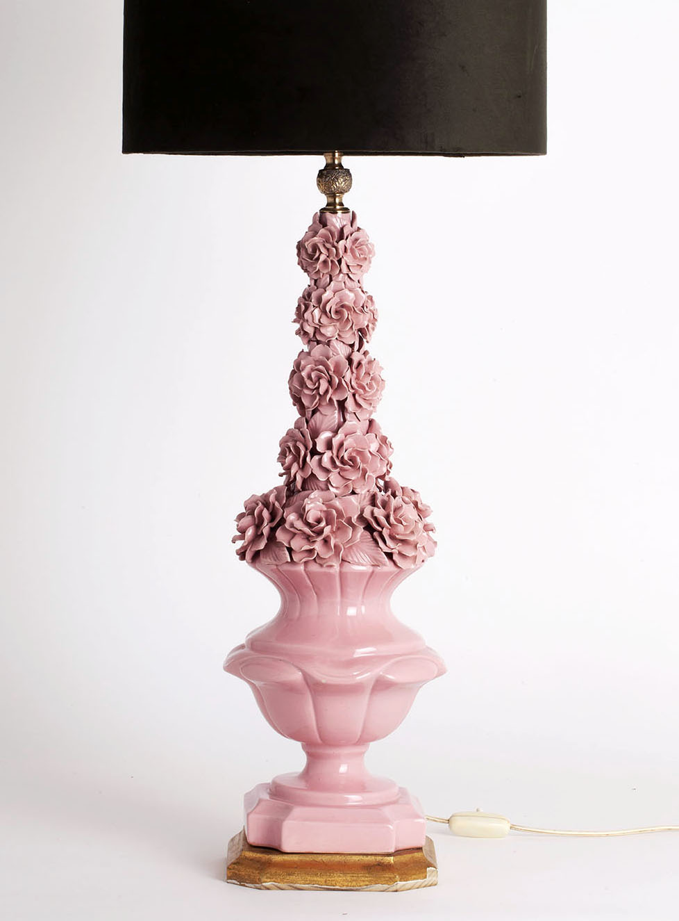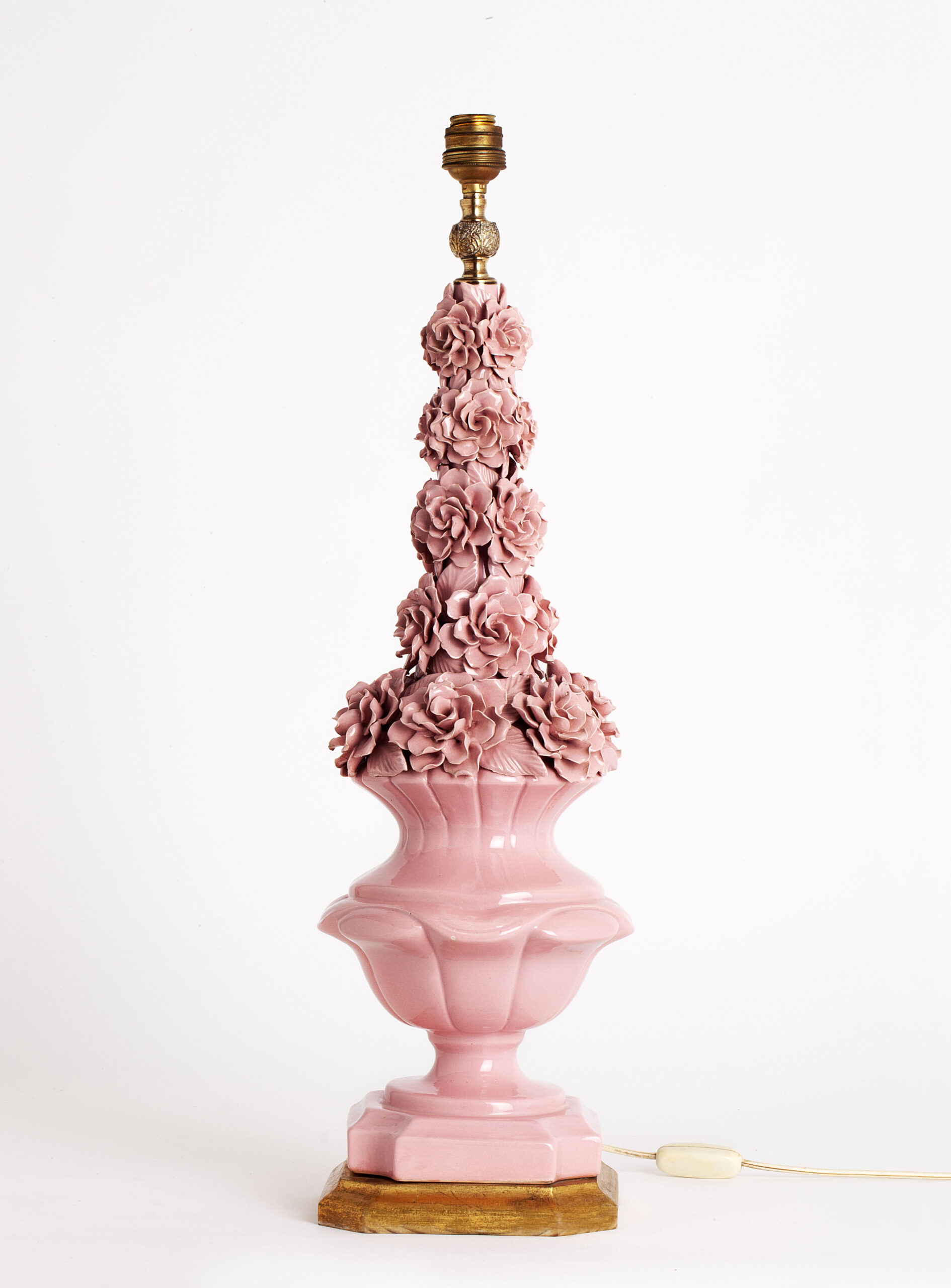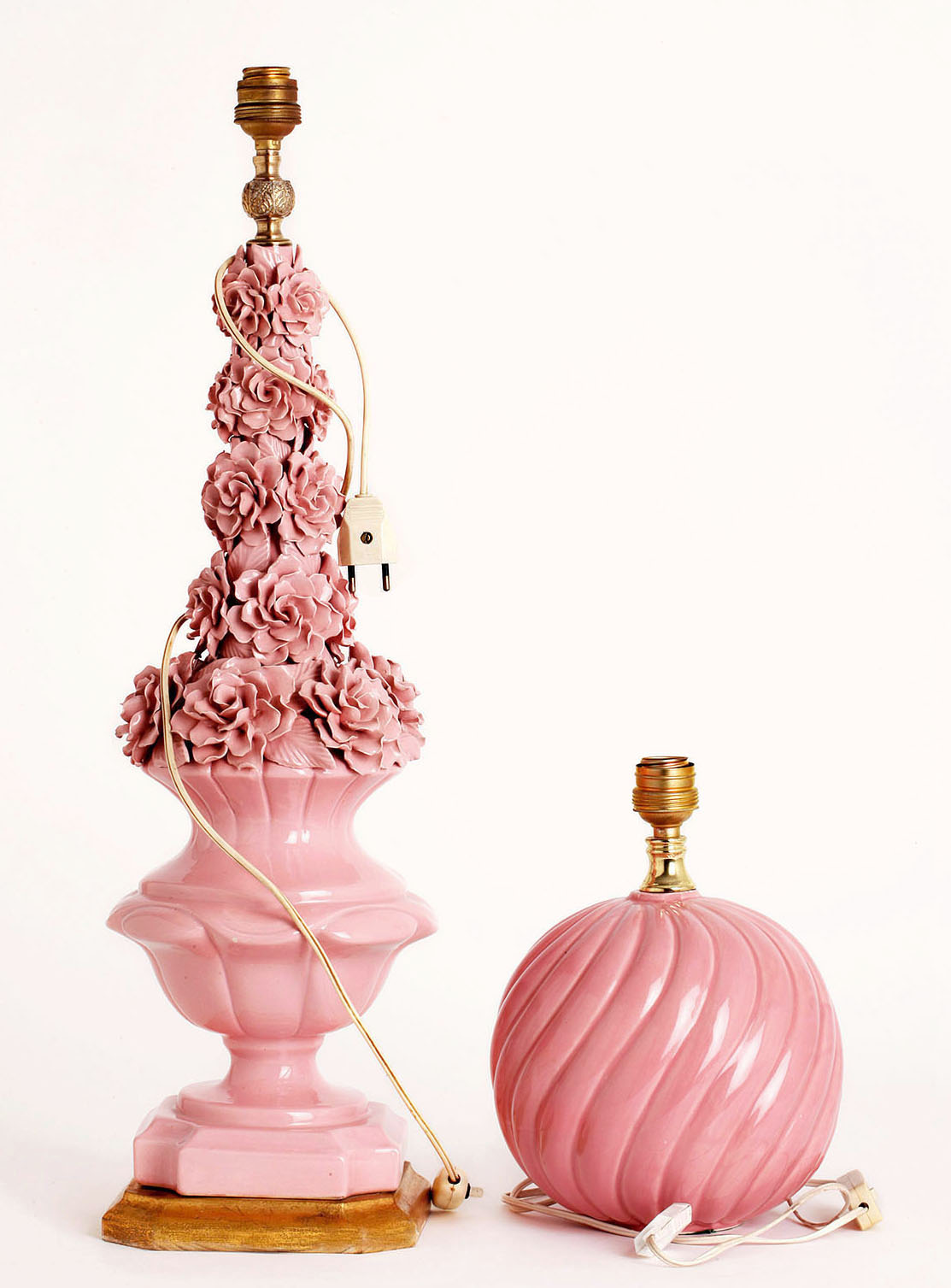 Pink glazed ceramic, with no faults or cracks. Original wiring