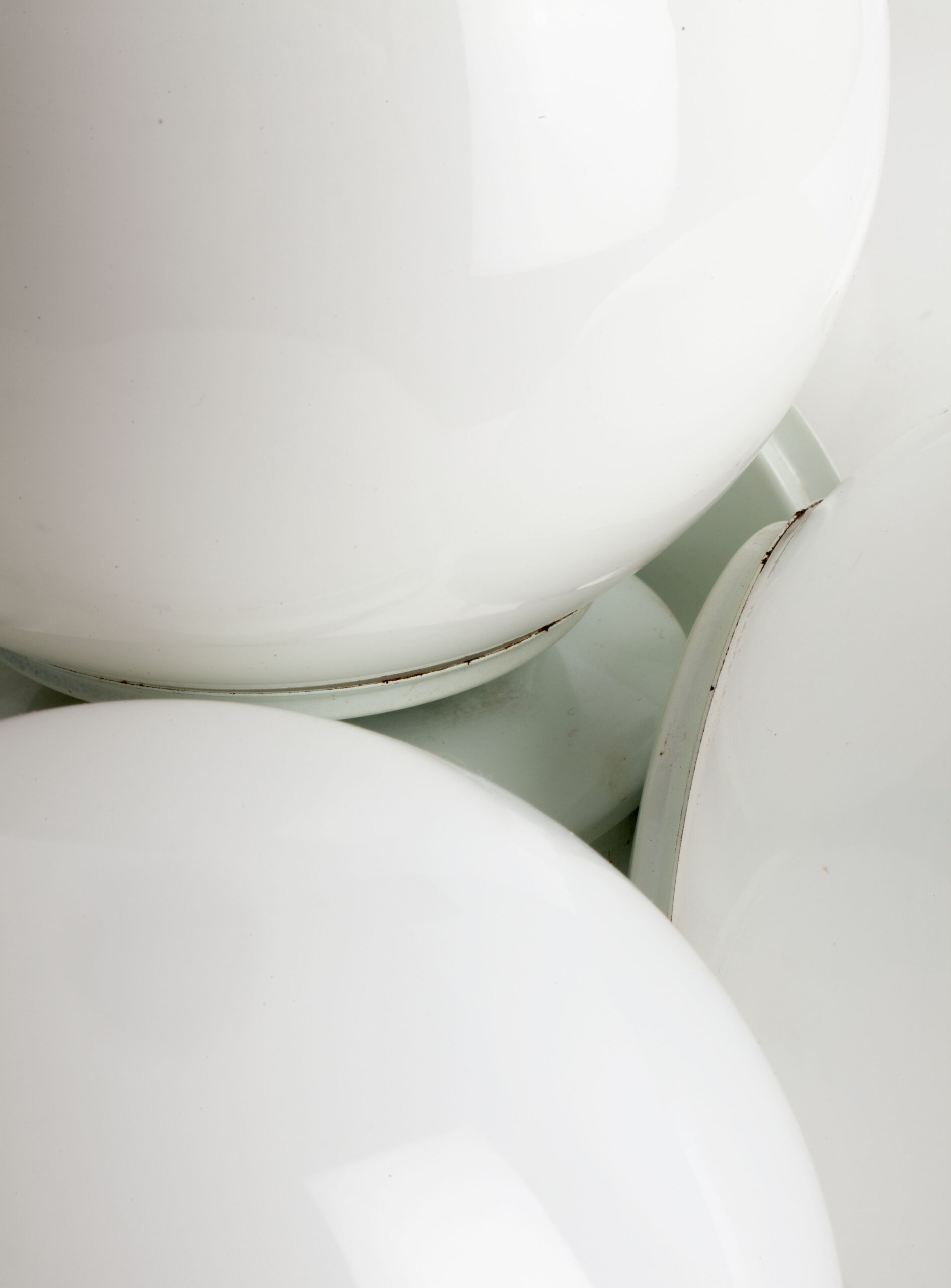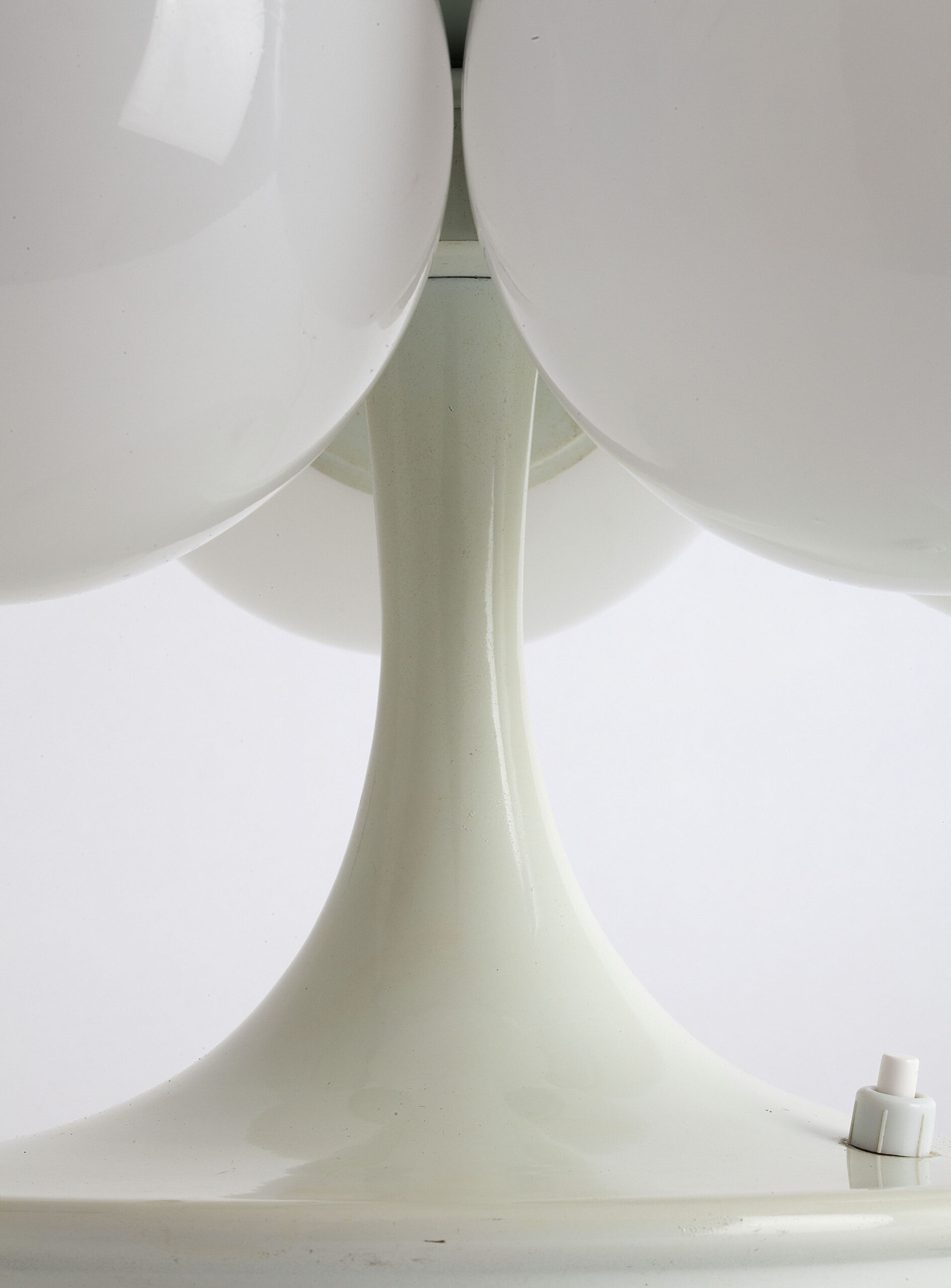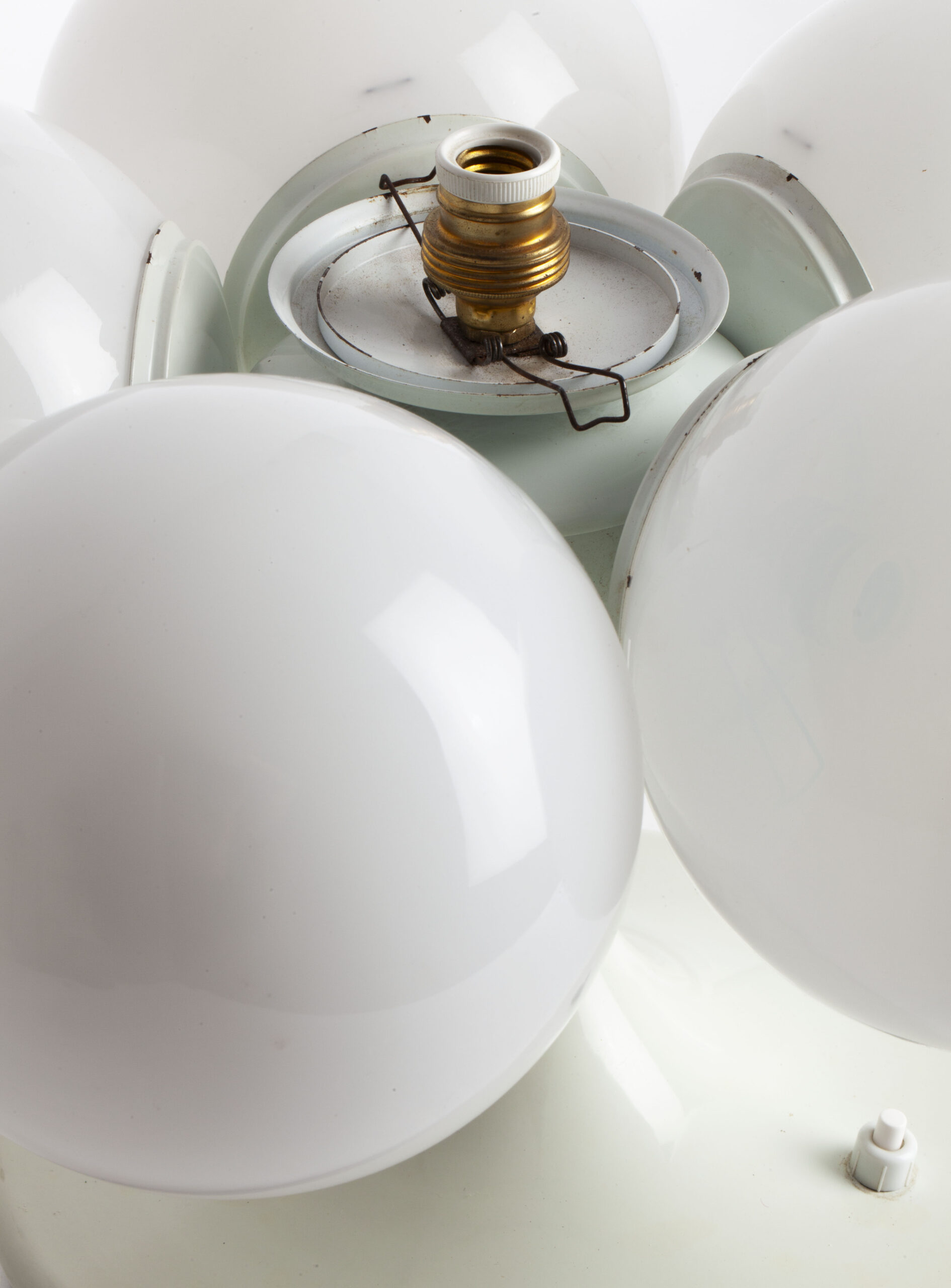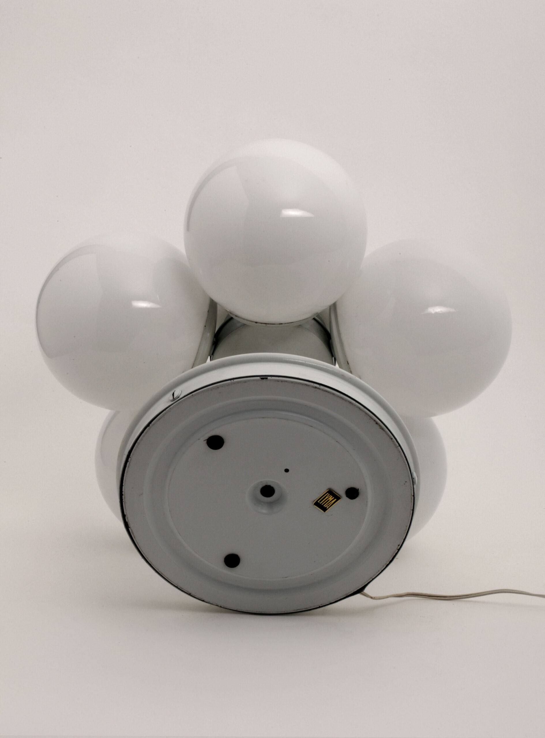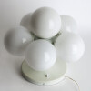 White lacquered aluminium structure and opal glass globes.