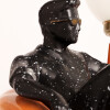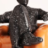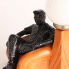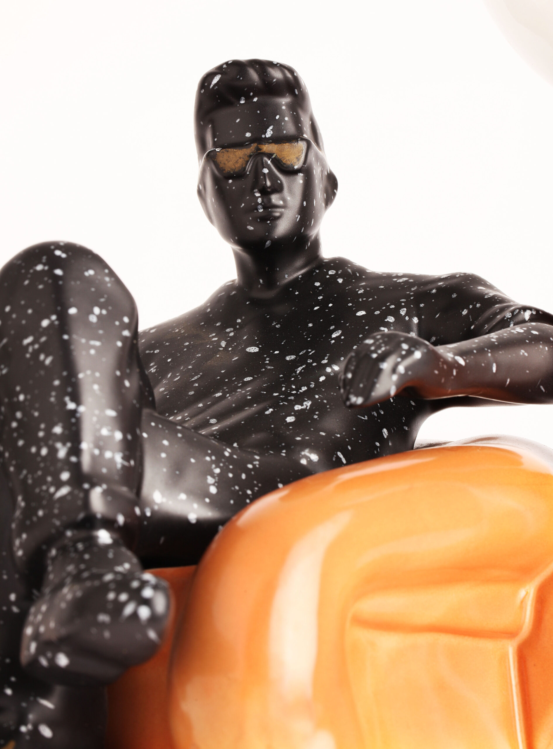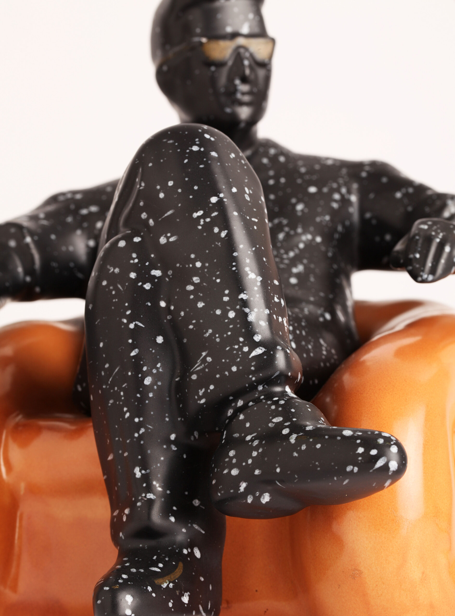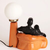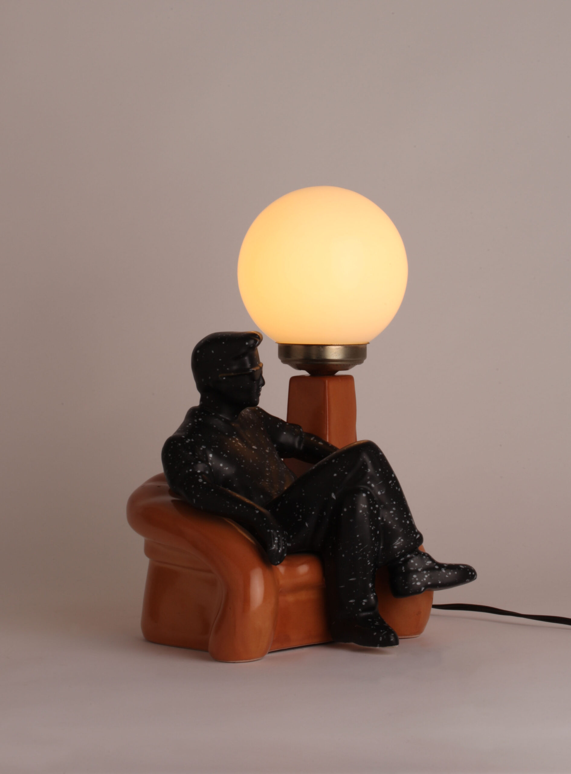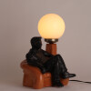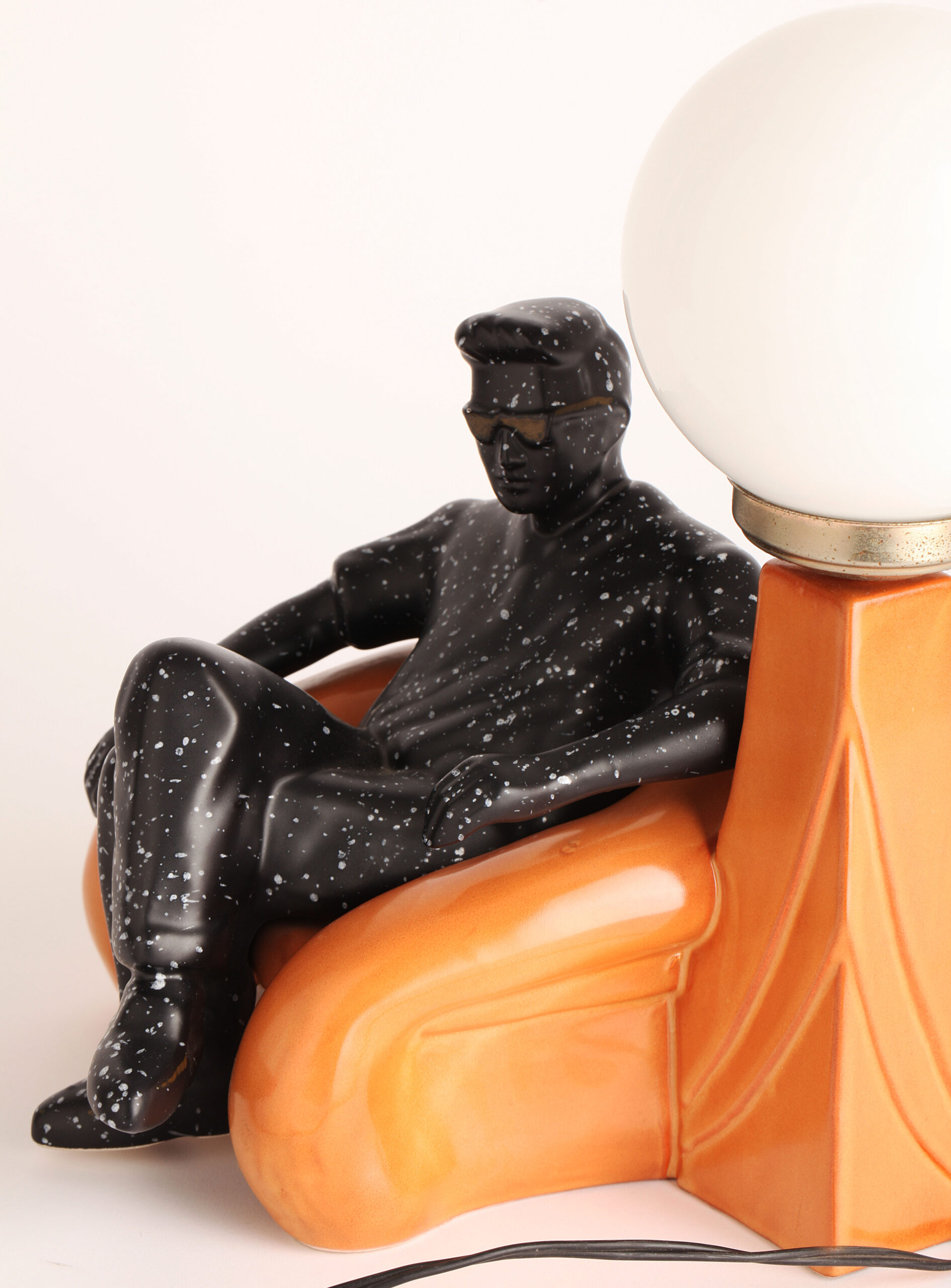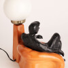 Man resting on a sofa Vintage ceramic table lamp from the 80´s Opaline glass shade and original wiring Good condition!