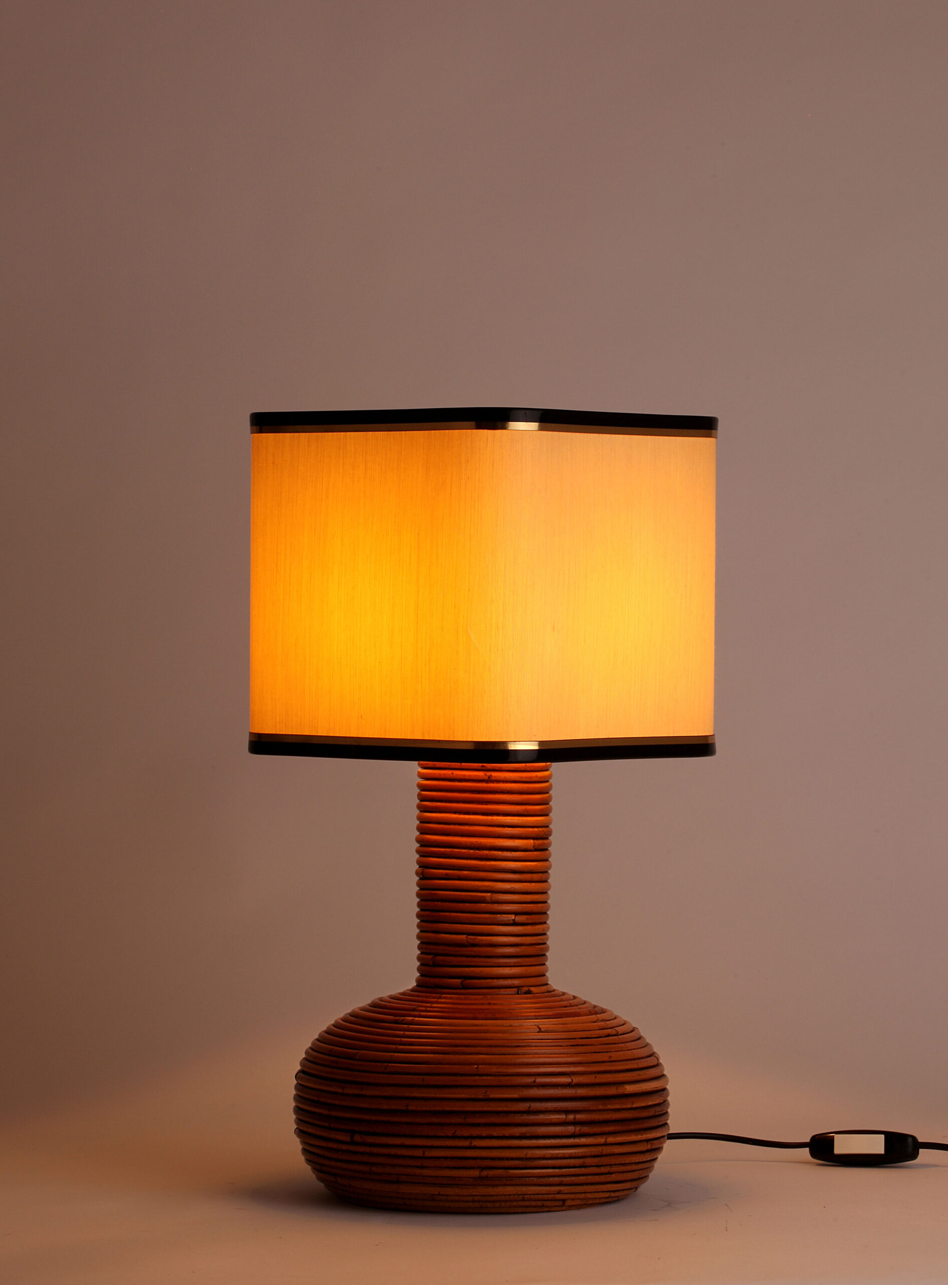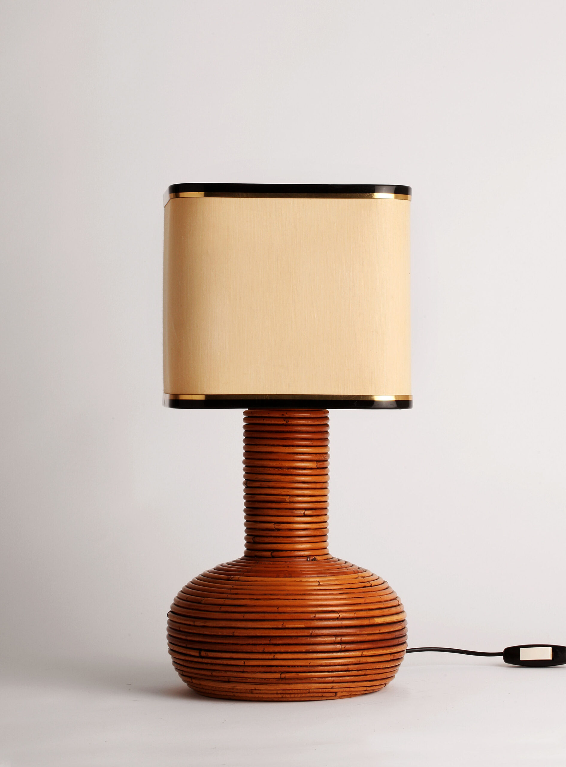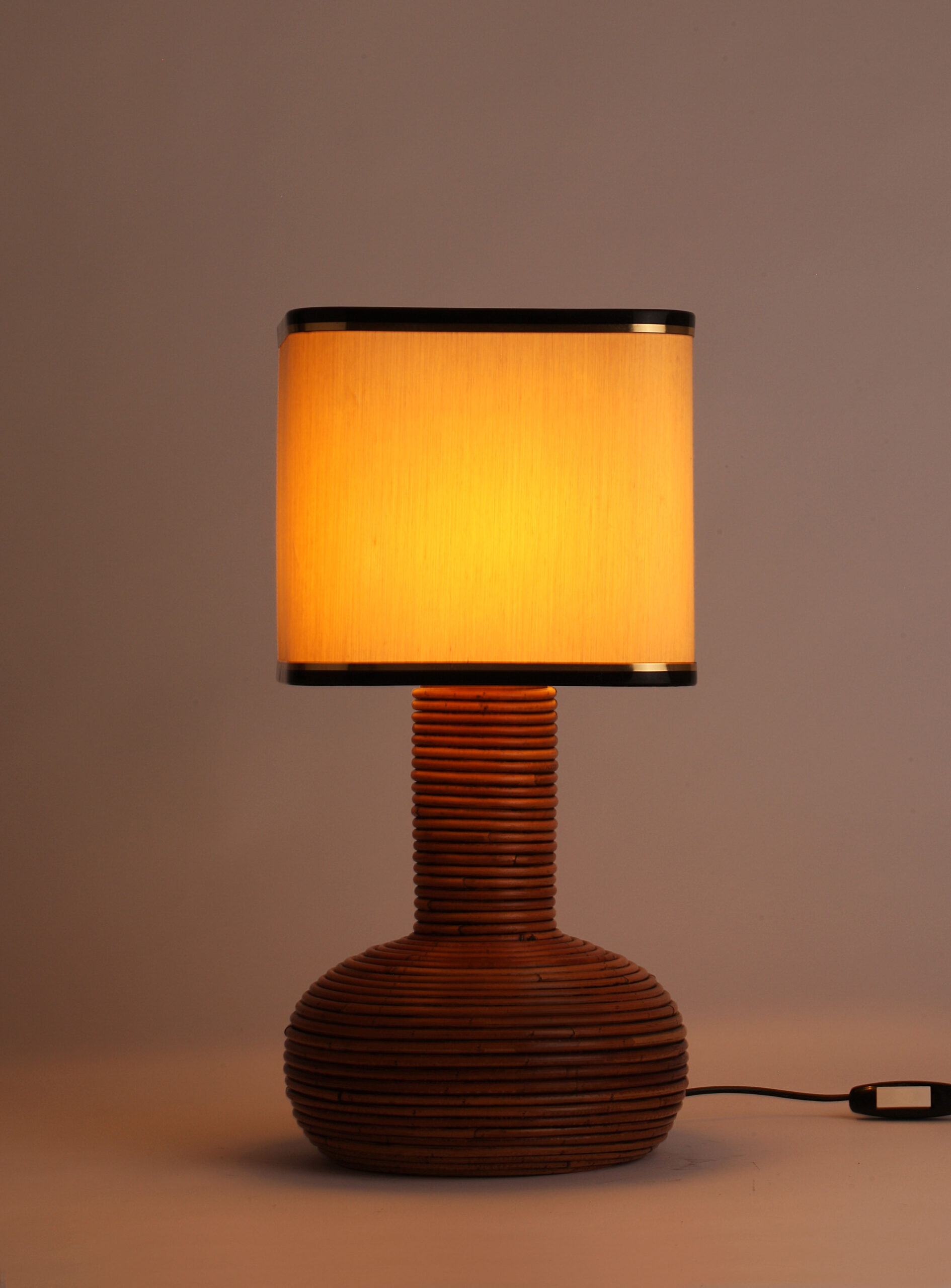 Lampara italiana de mesa de ratan natural original de los años 70 Estilo Gabriella Crespi Muy buen estado