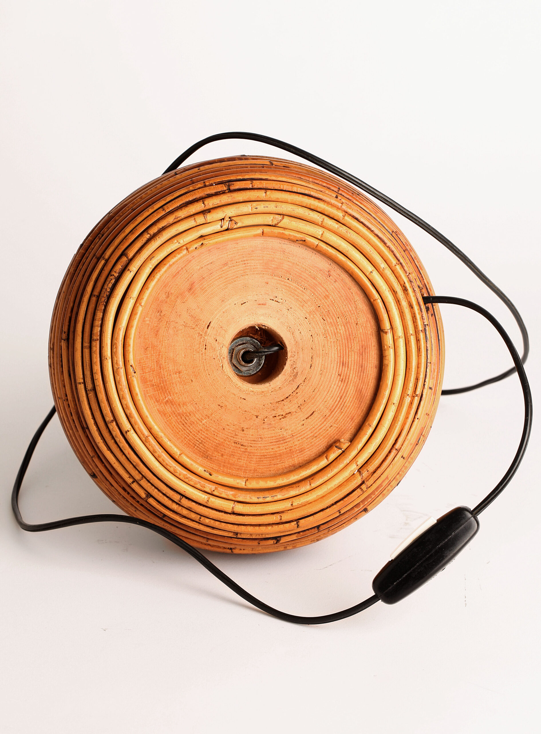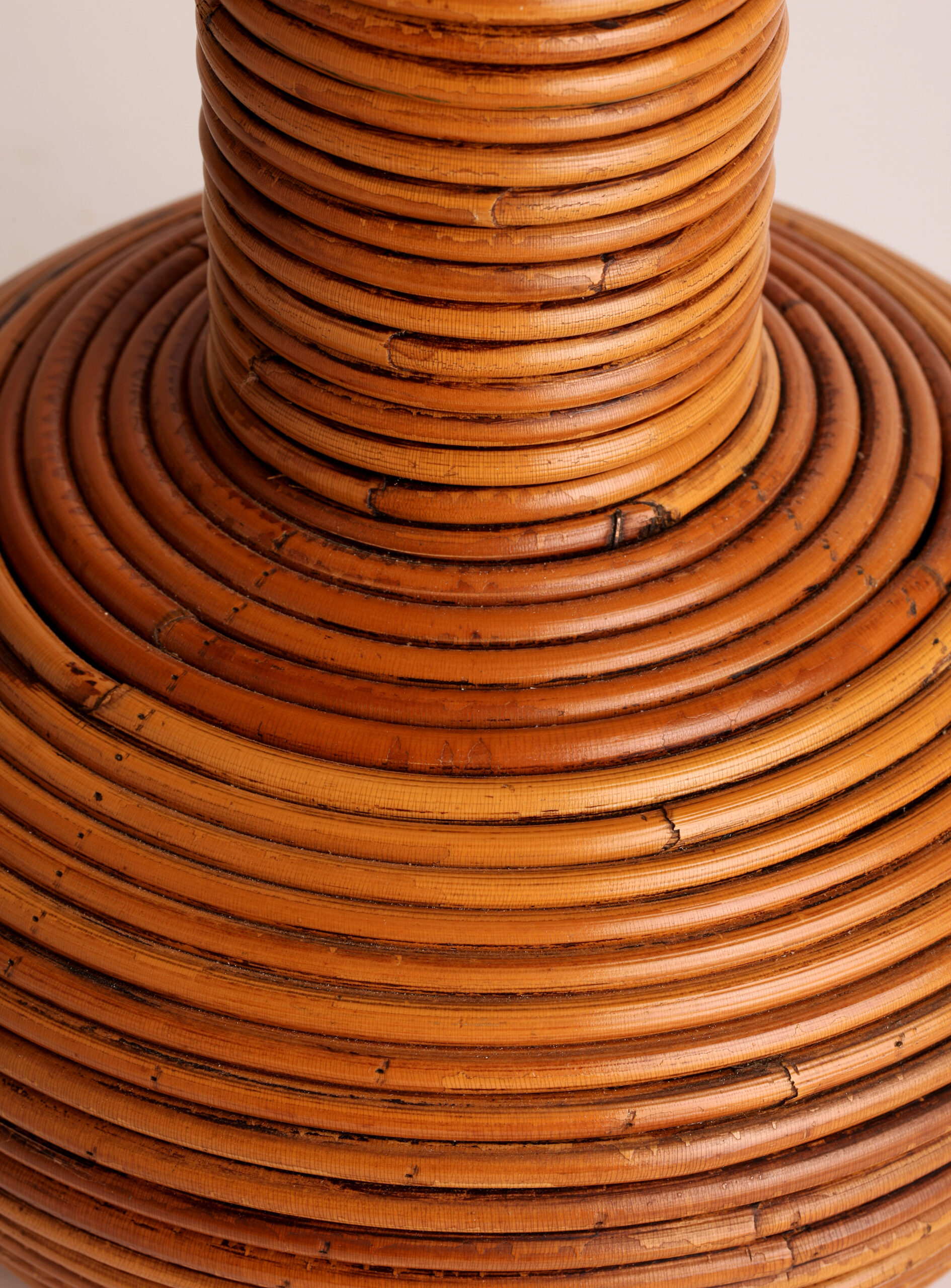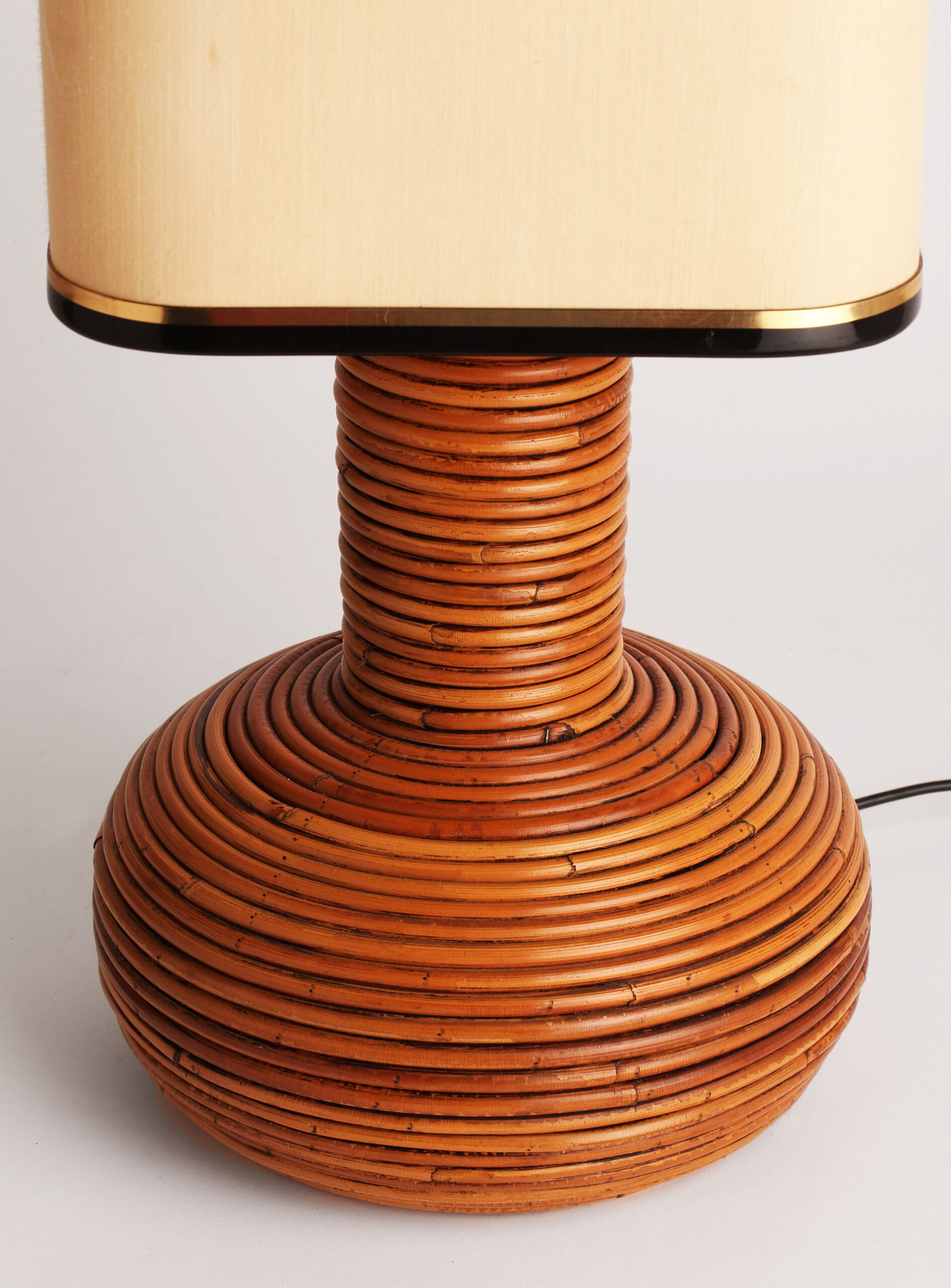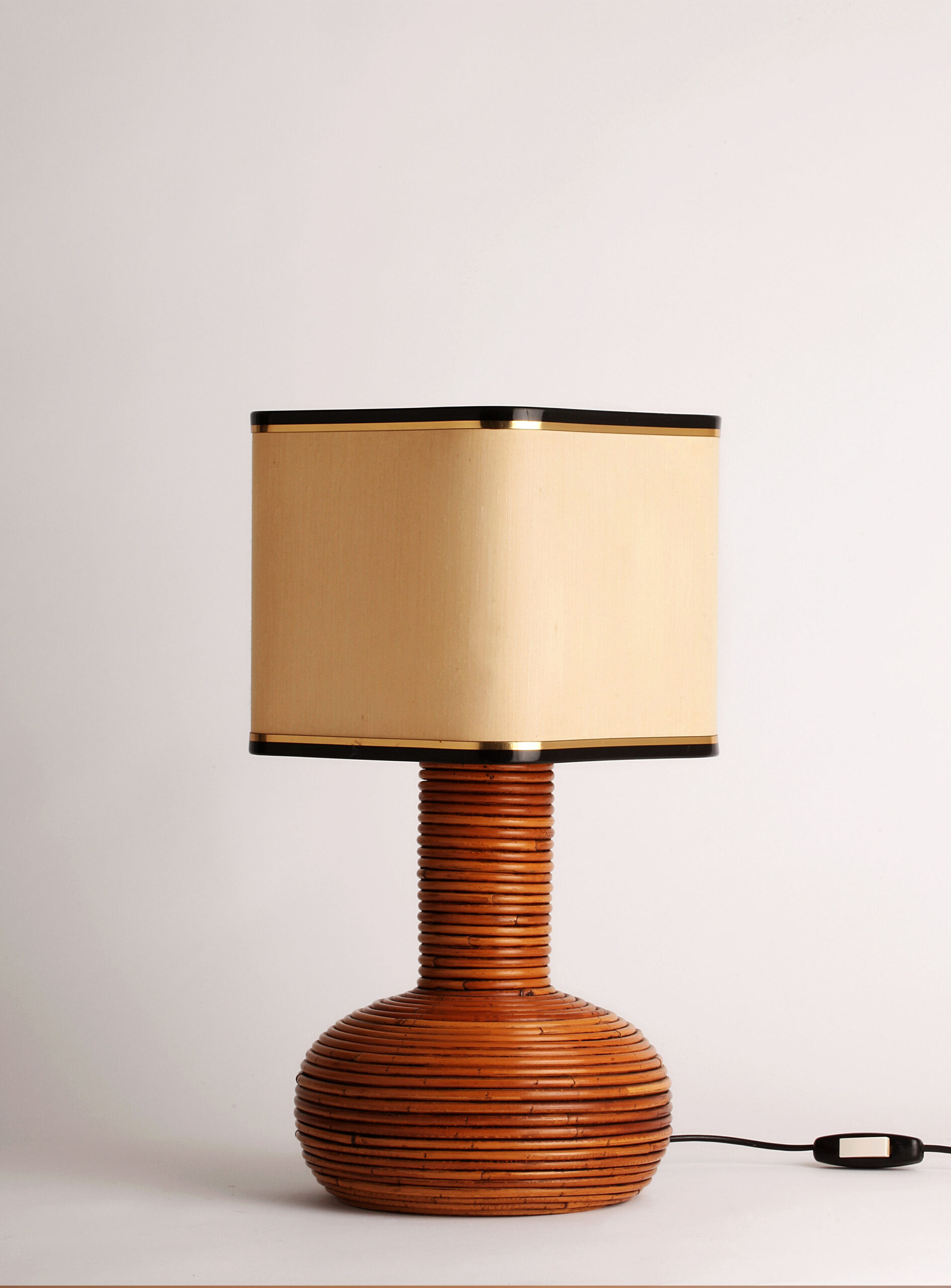 Lampara italiana de mesa de ratan natural original de los años 70 Estilo Gabriella Crespi Muy buen estado