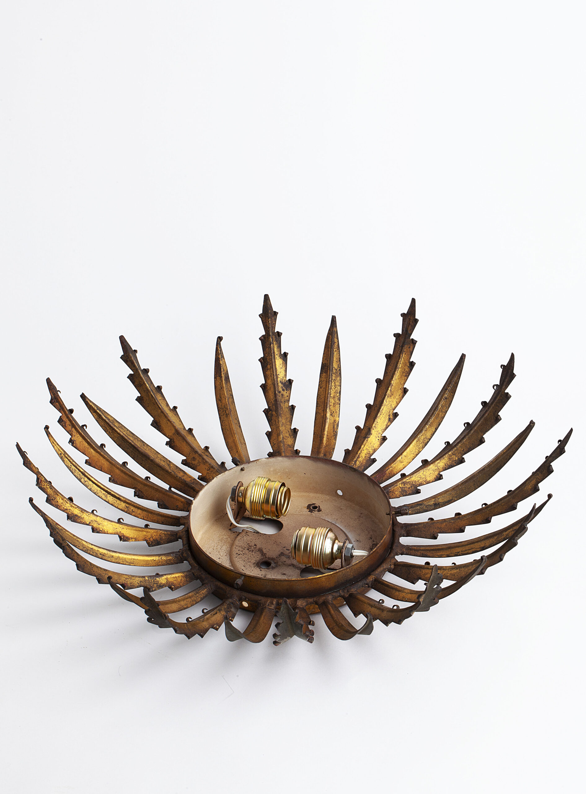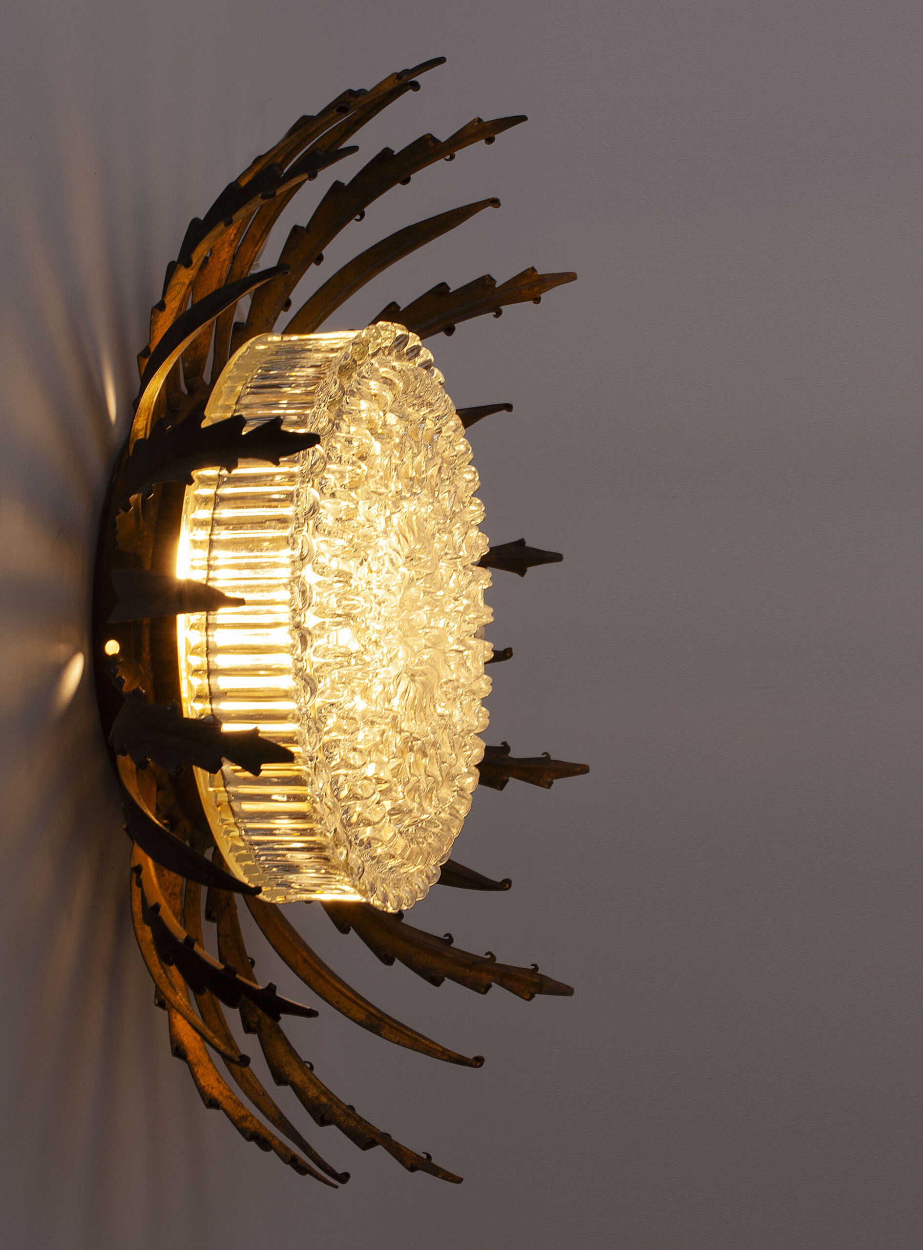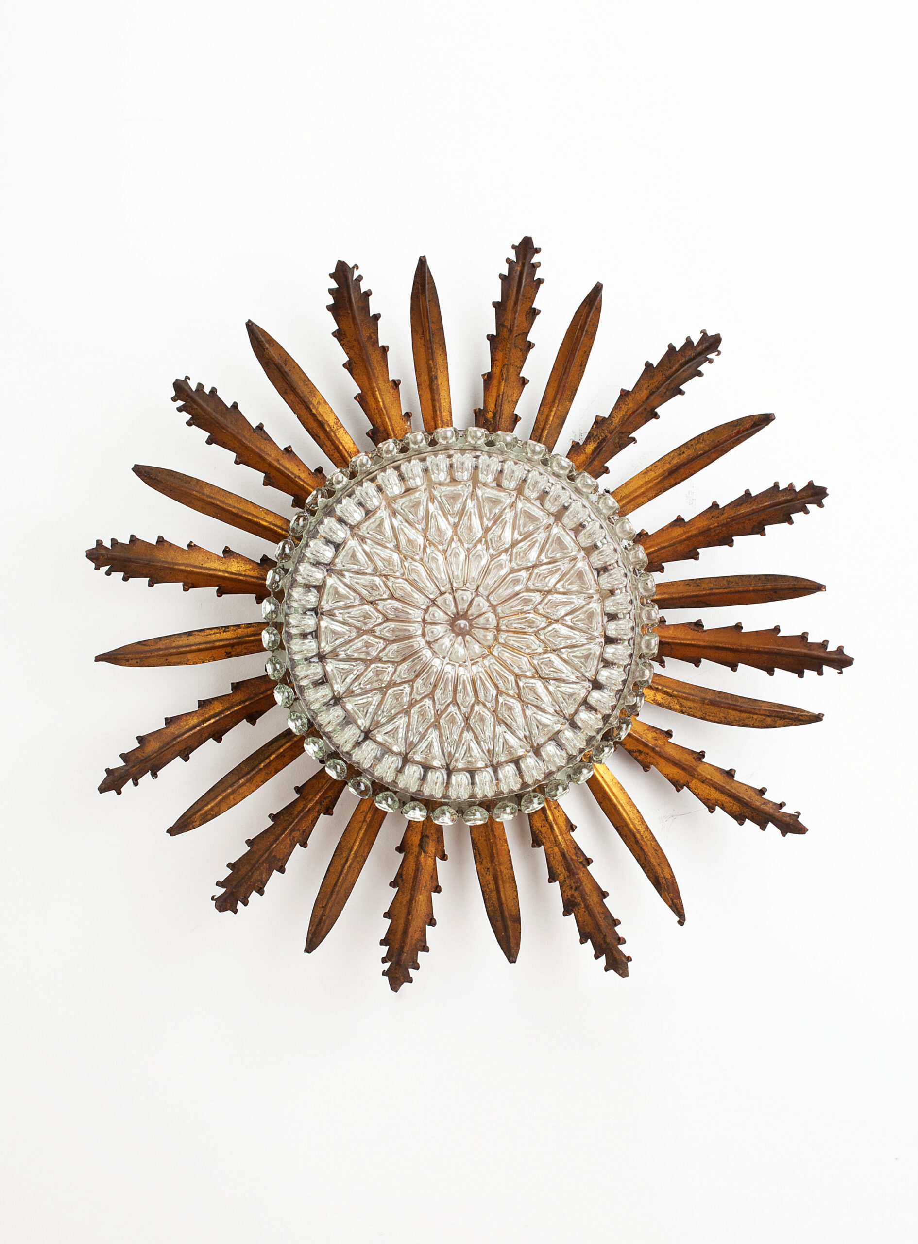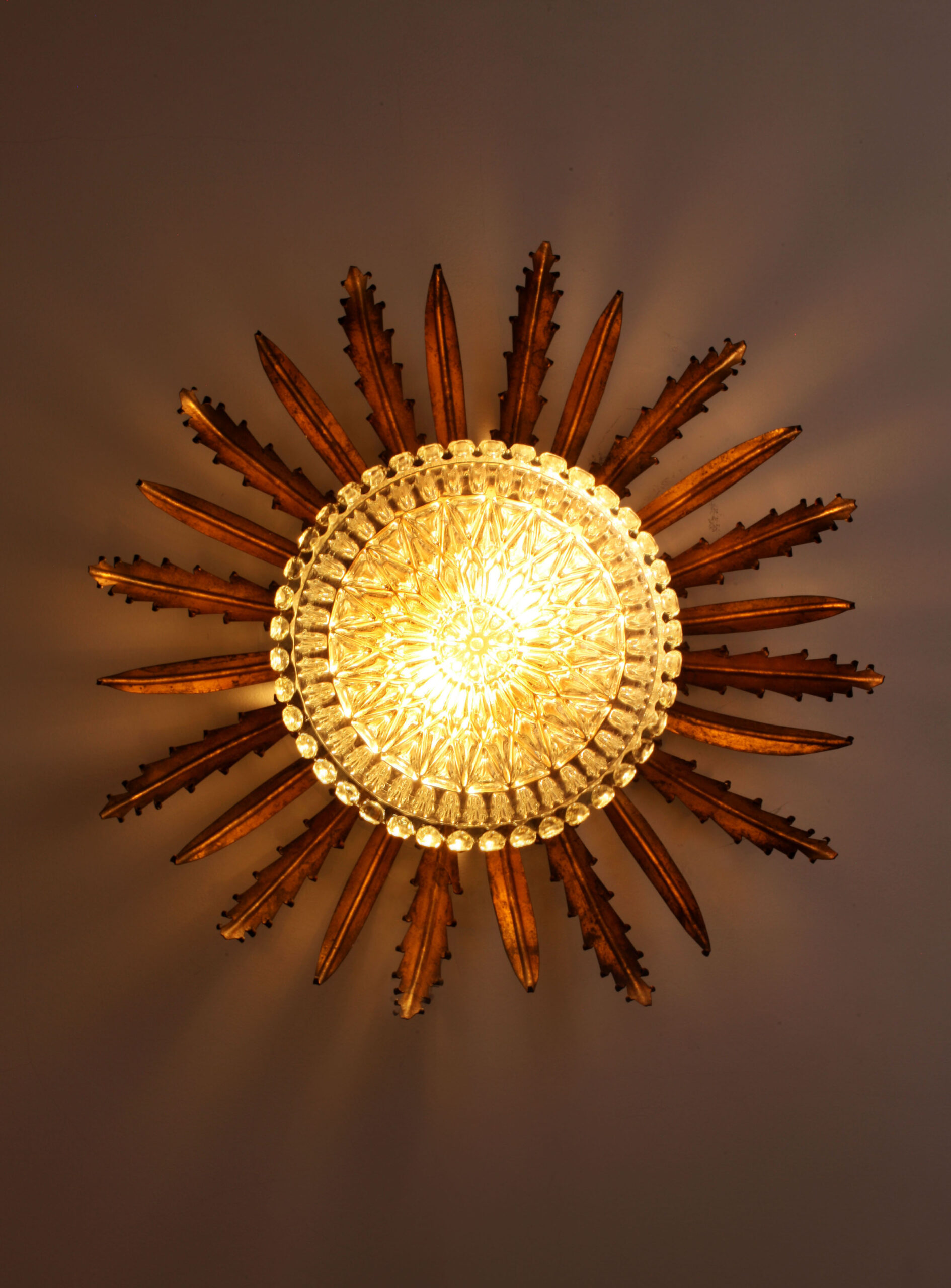 Sun-shaped wall or ceiling lamp produced in Spain in the 1950s.