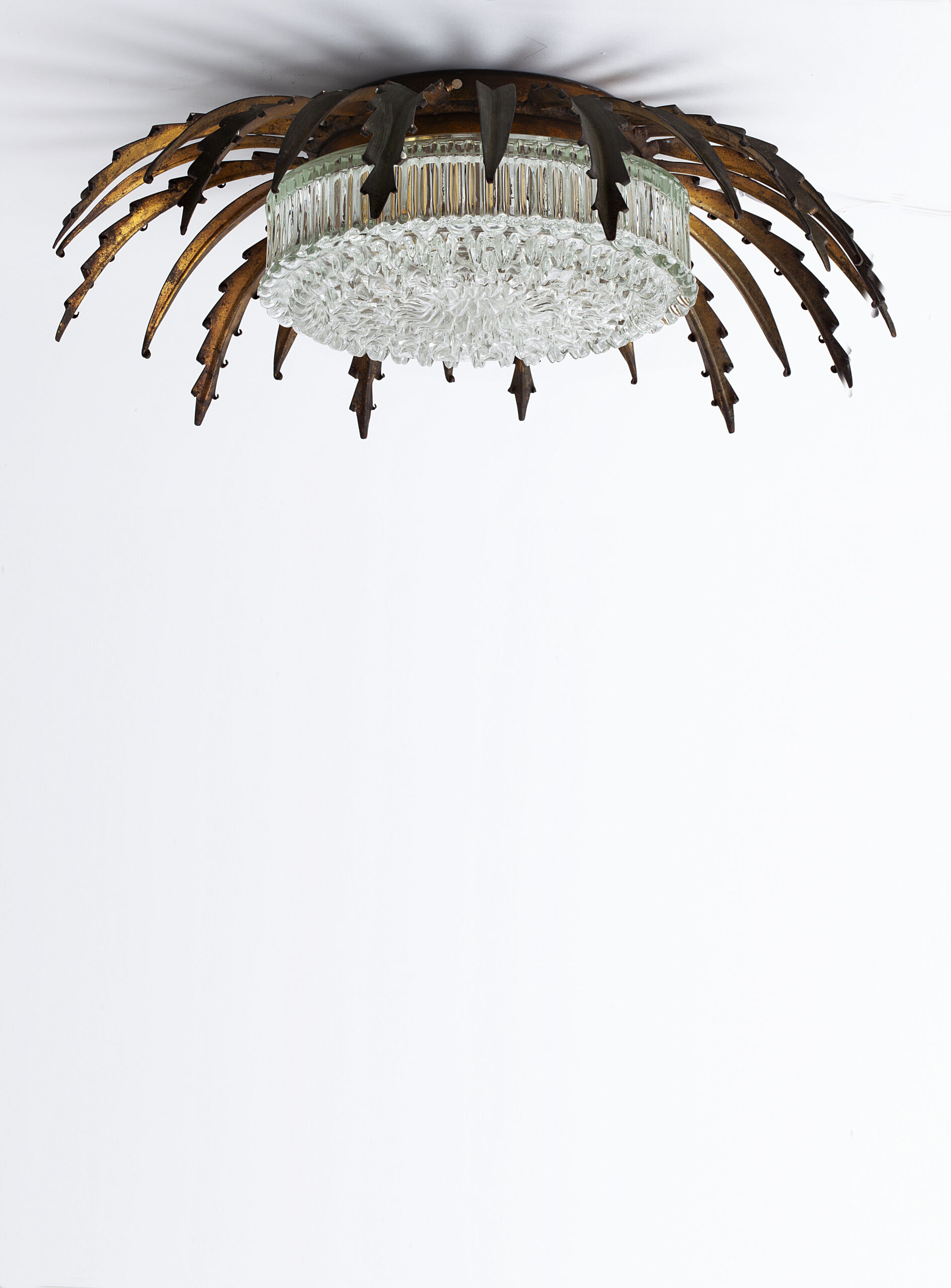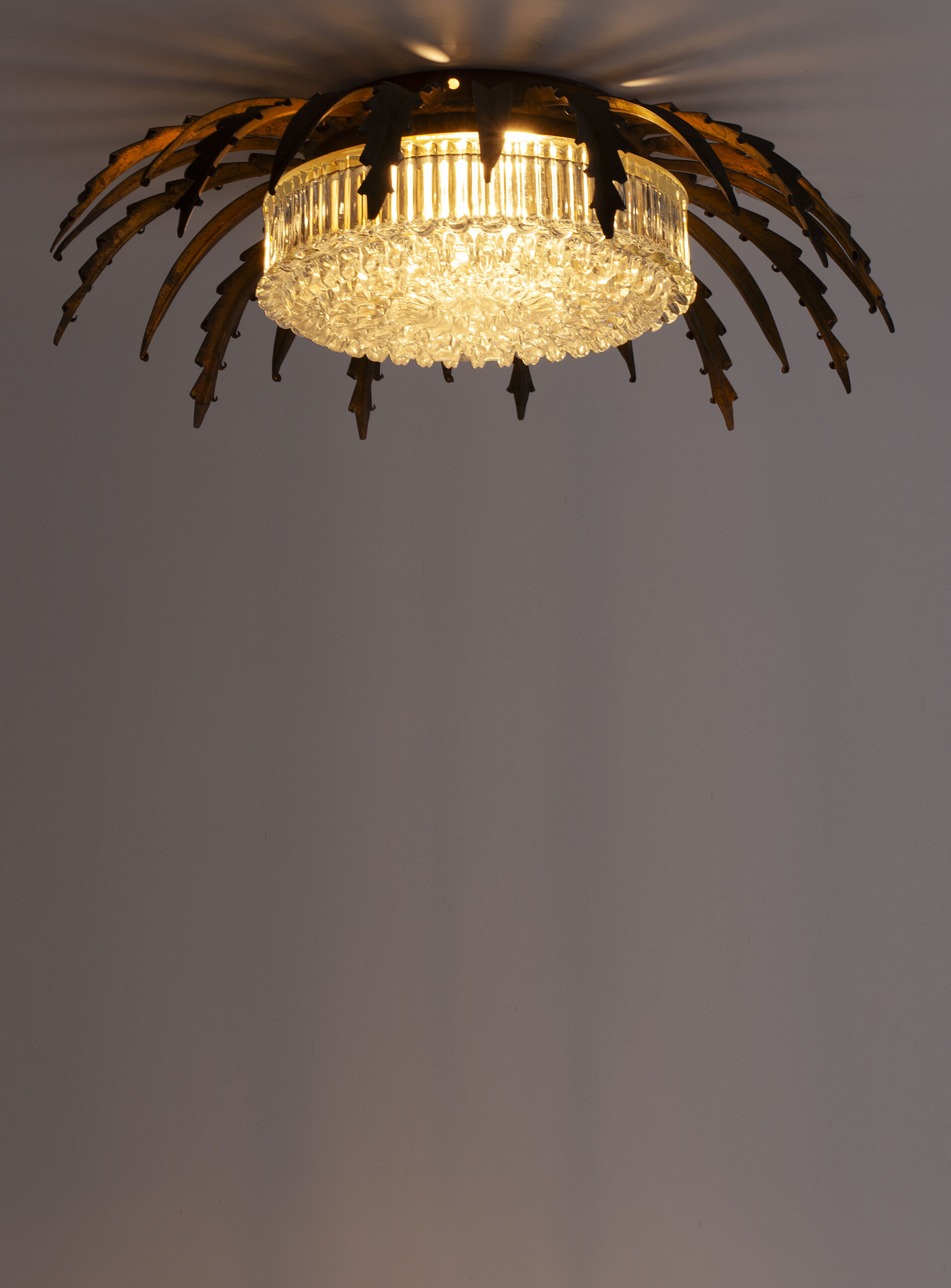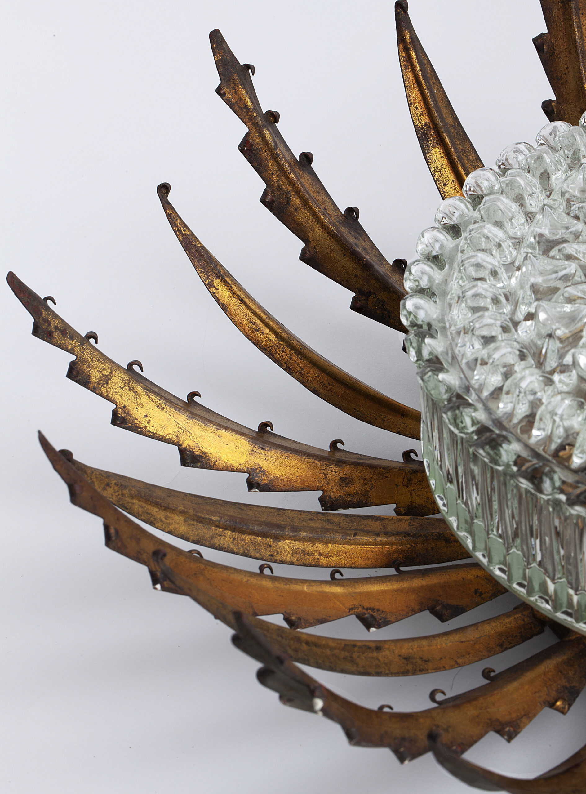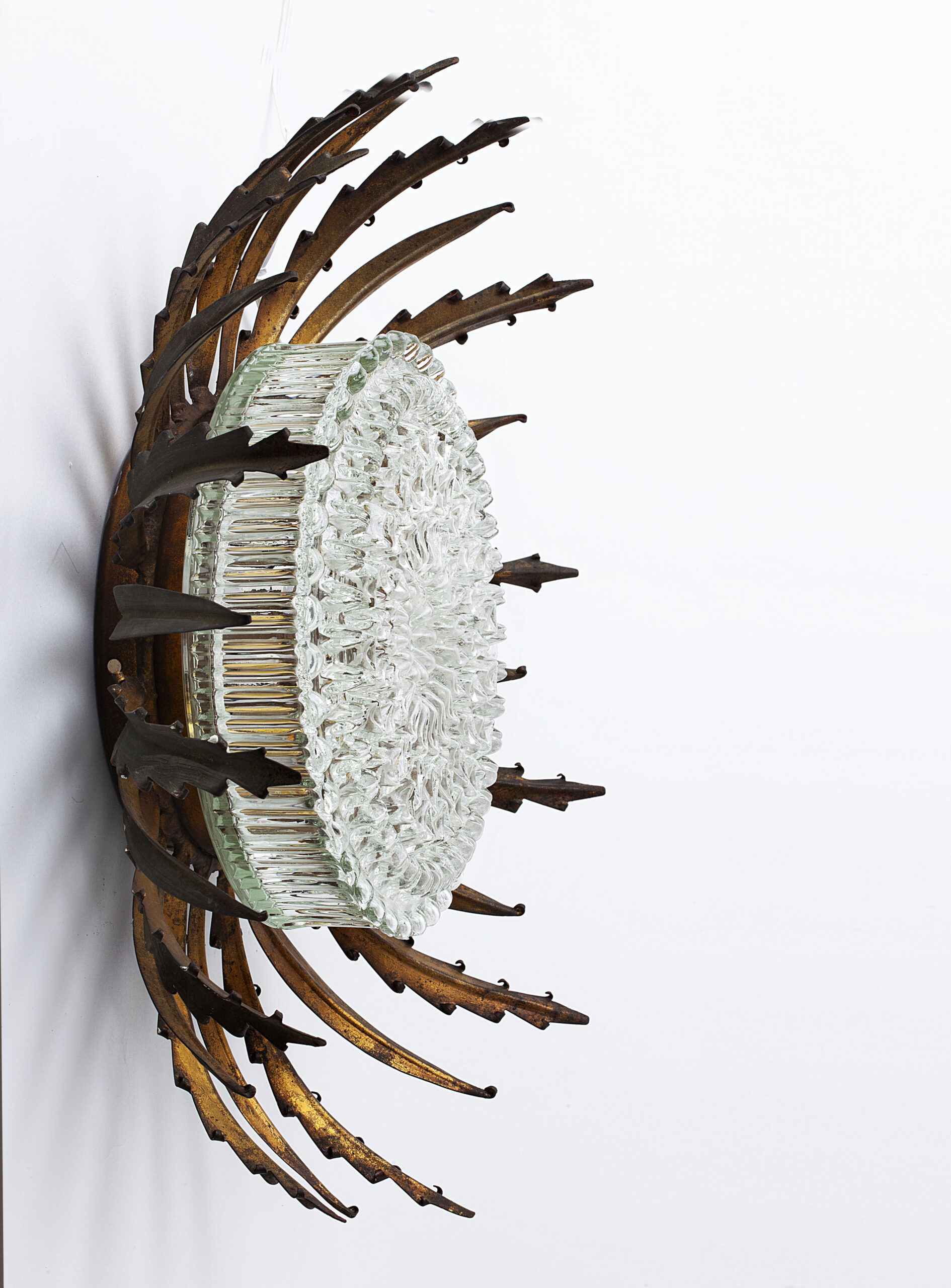 Sun-shaped wall or ceiling lamp produced in Spain in the 1950s.