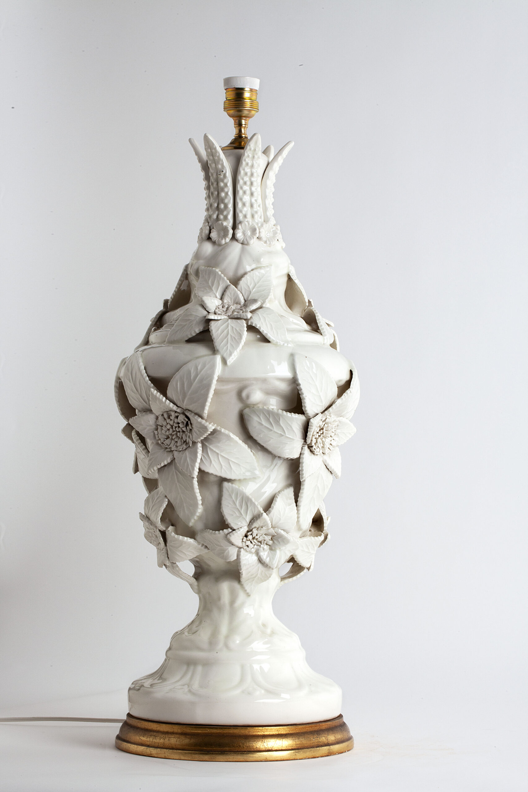 The ceramic is in excellent condition with no chips or cracks. The wiring has been replaced with new electrical material from the same period.