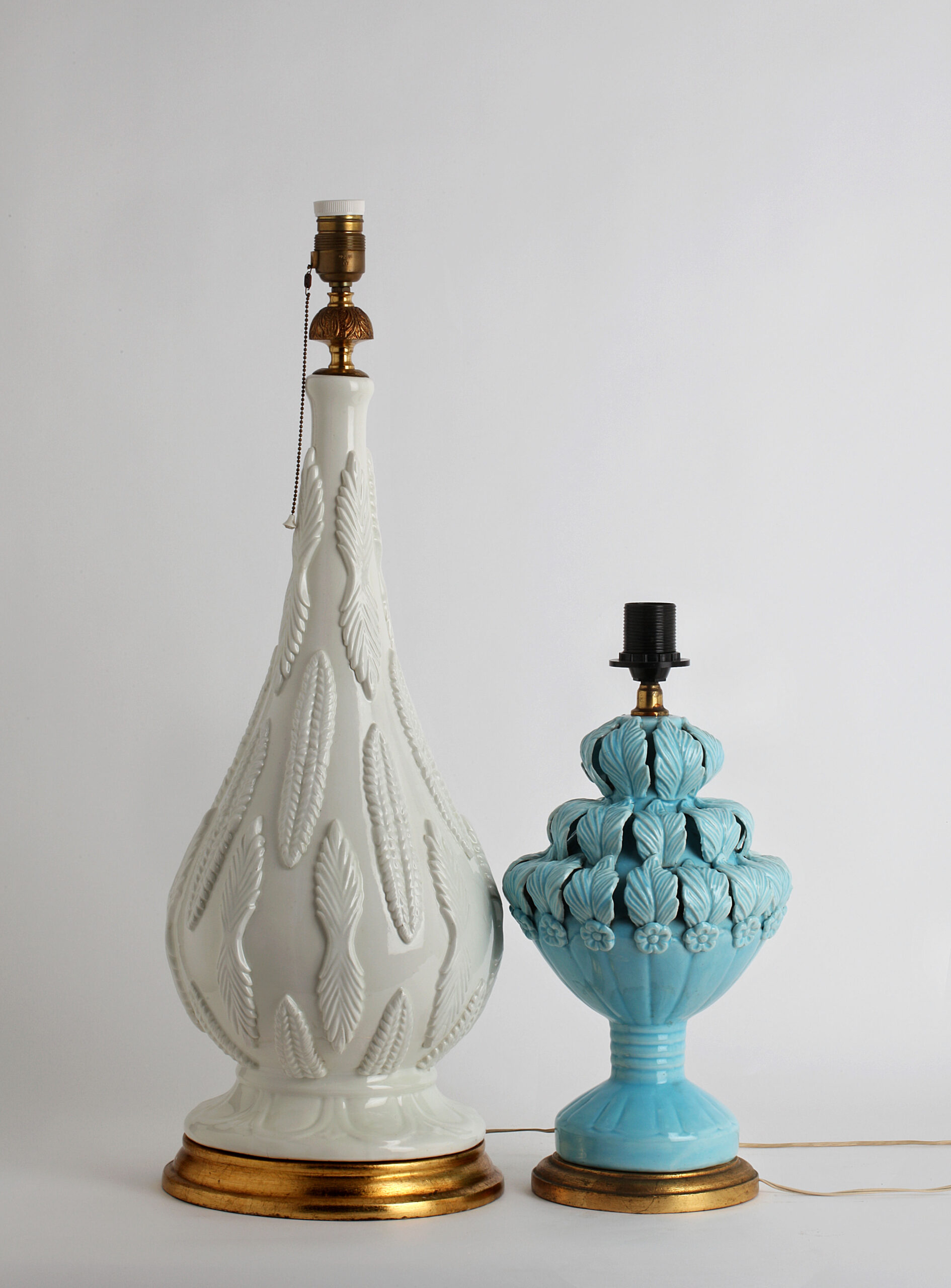 large size ivory-coloured glazed ceramic lamp from Manises, vintage 60’s.