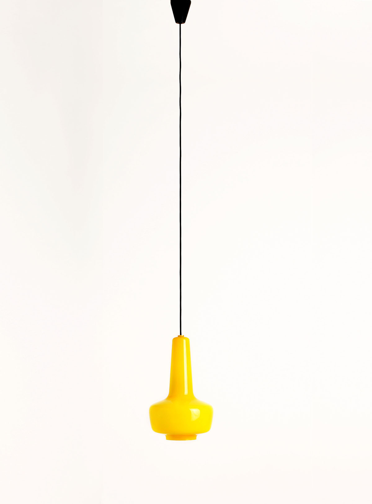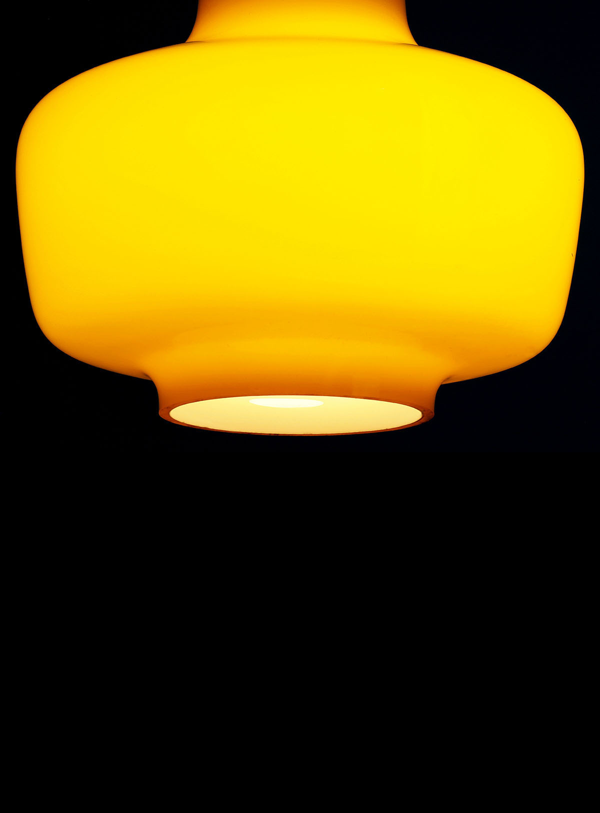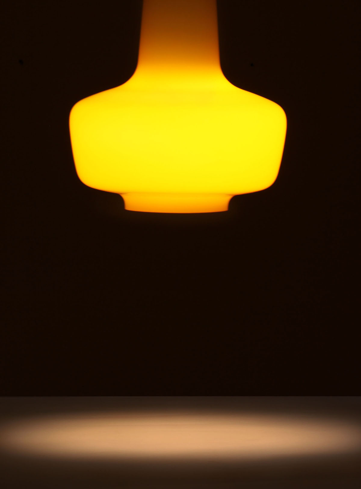 The lamp was released in five colors; light gray, olive green, purple opal and this beautiful yellow version.